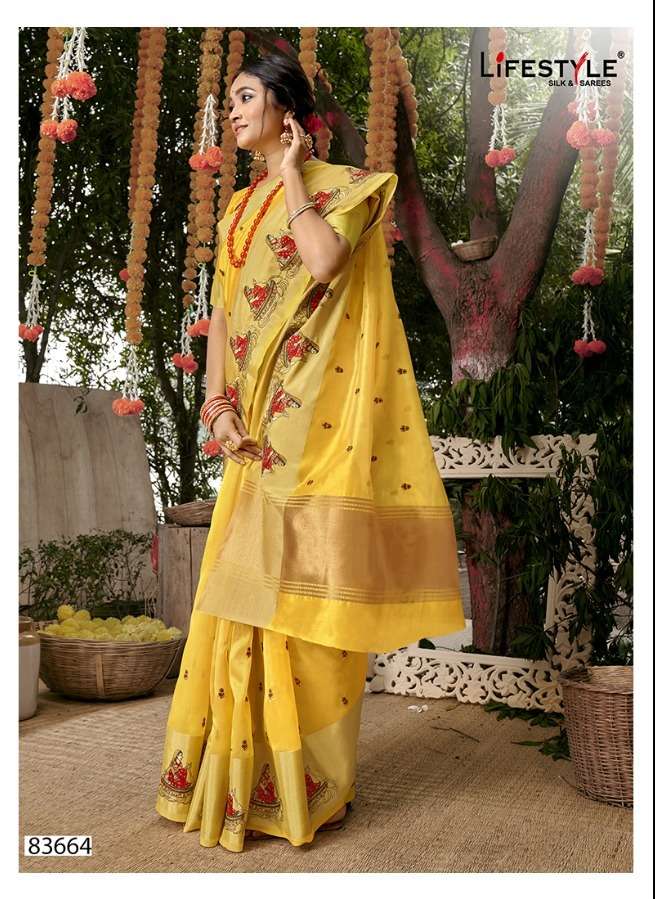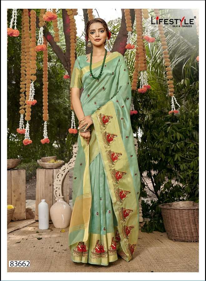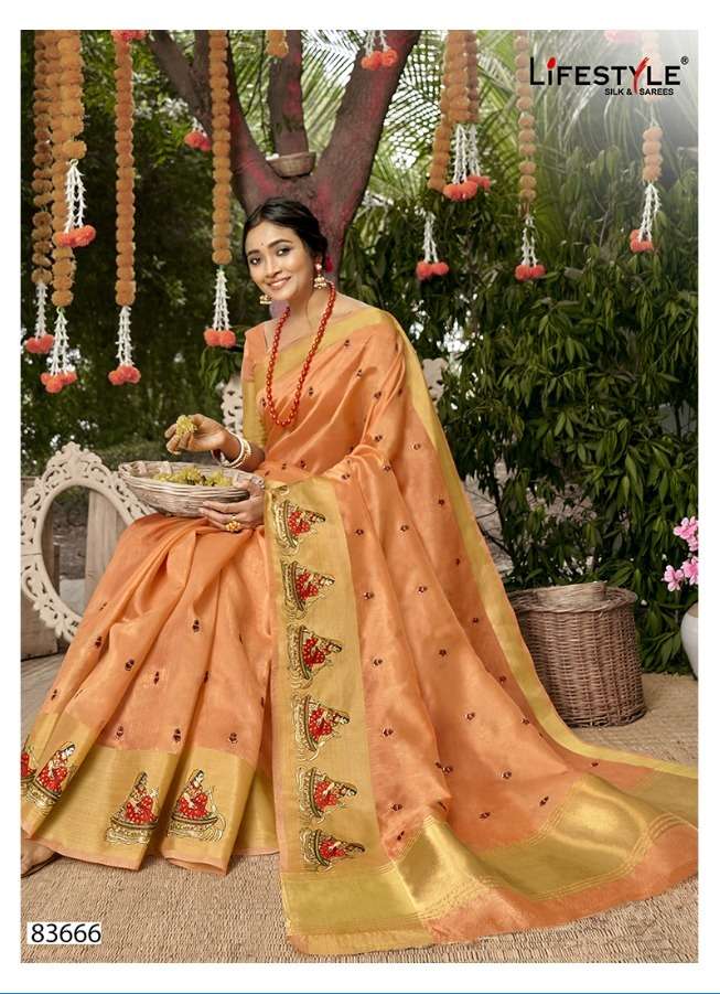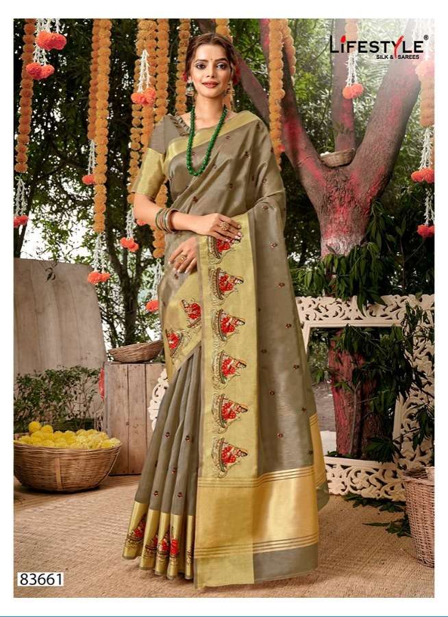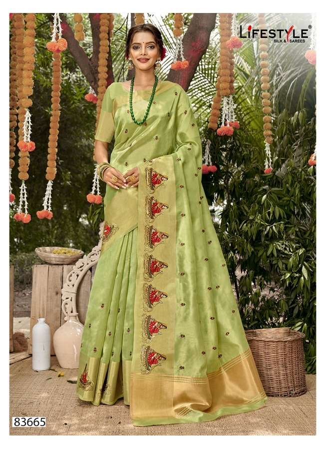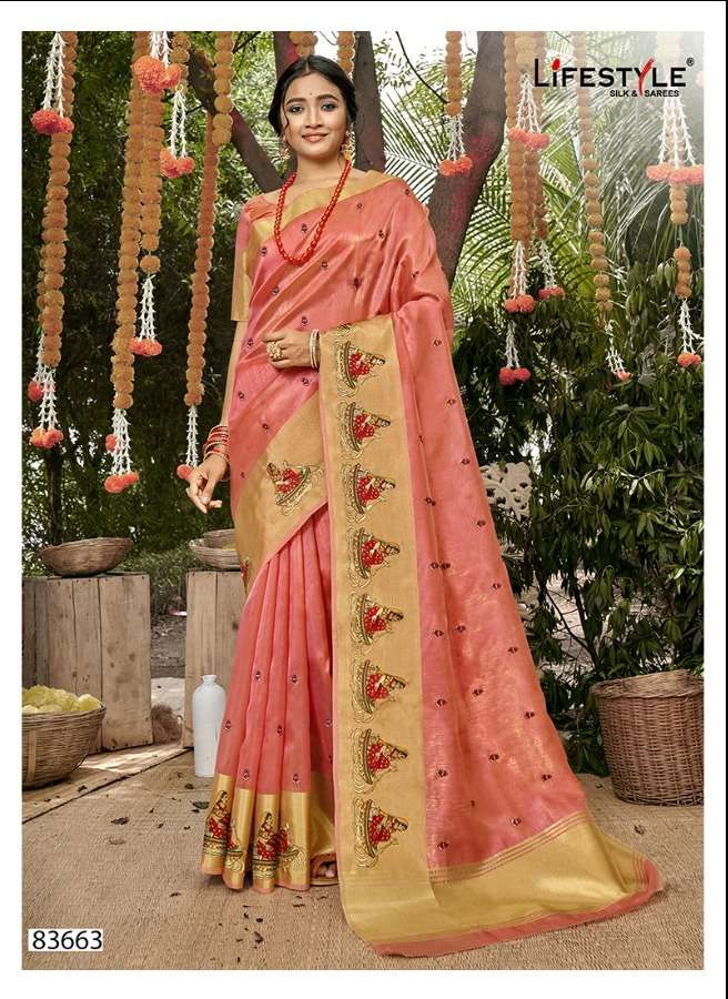Brand = LIFESTYLE Catalog = ORGANZA WEAVES NEW FANCY ORGANZA SAREE WITH EMBROIDERY WORK |