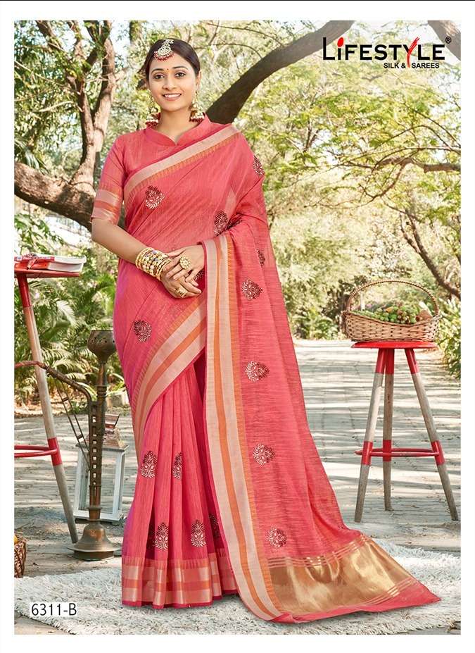 Lifestyle Saree Presents Latest Collection Launched on 09-02-2023. Presenting Beautiful collection of 6 PCS with Unstitched .