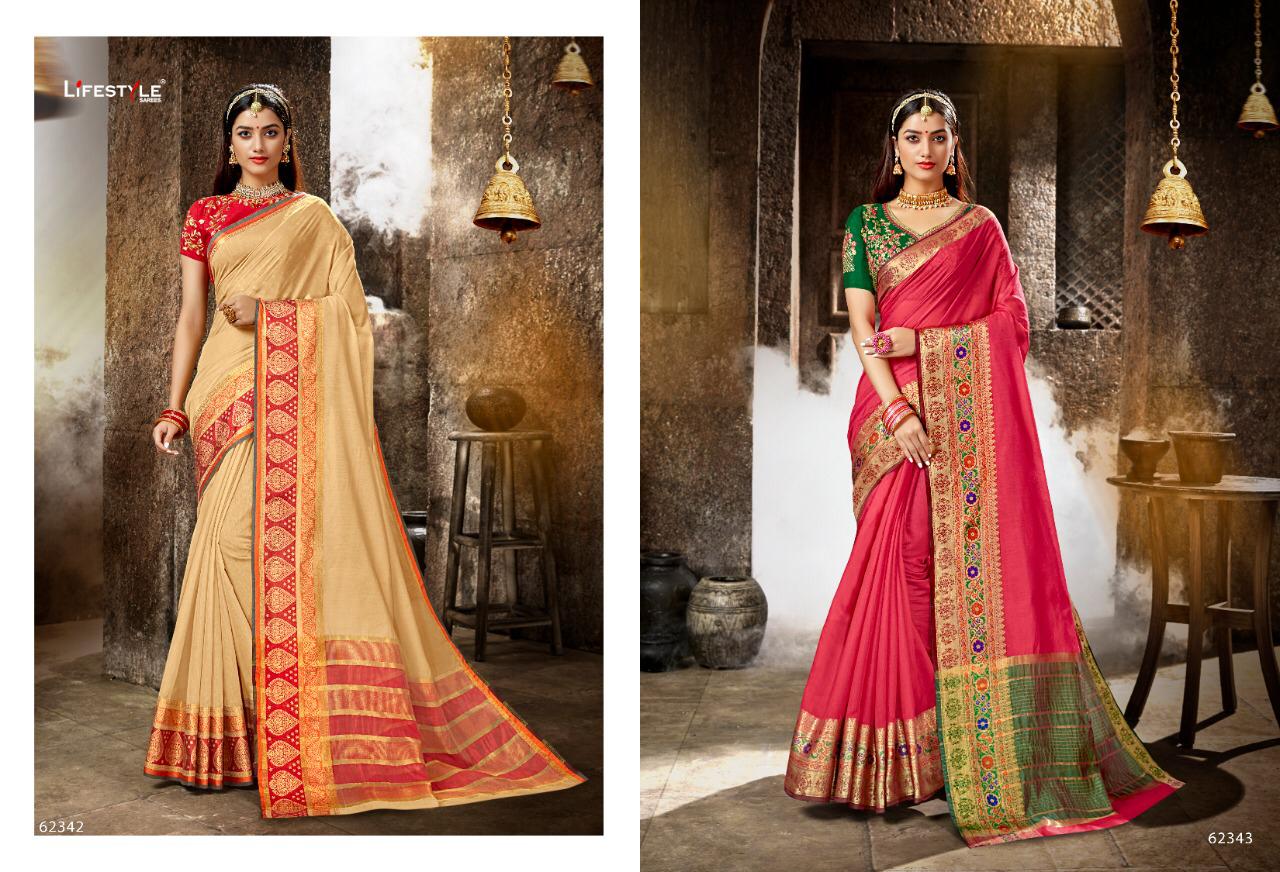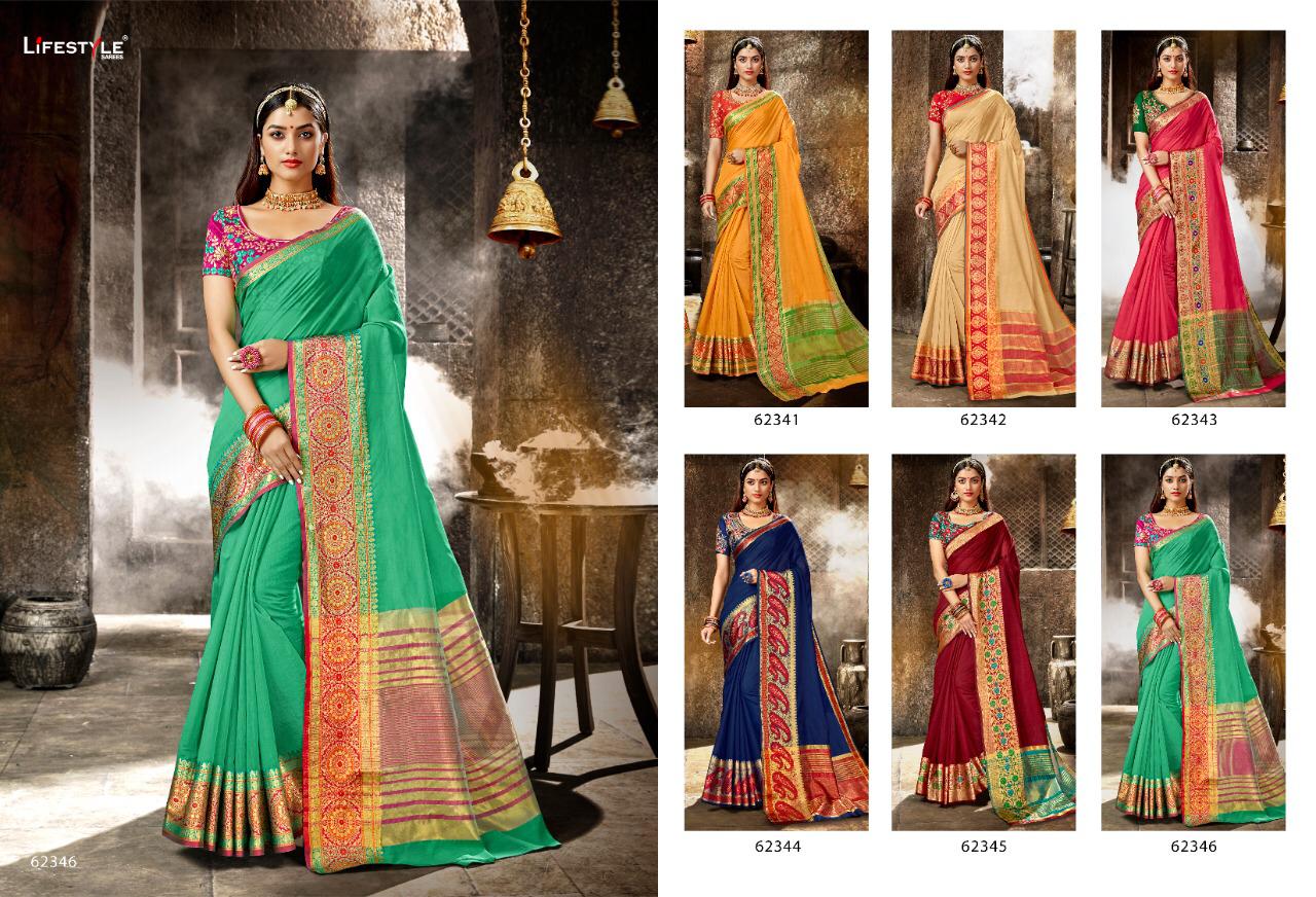 Lifestyle Saree Presents Latest Collection Launched on 08-10-2019. Presenting Beautiful collection of 6 PCS with Unstitched .
