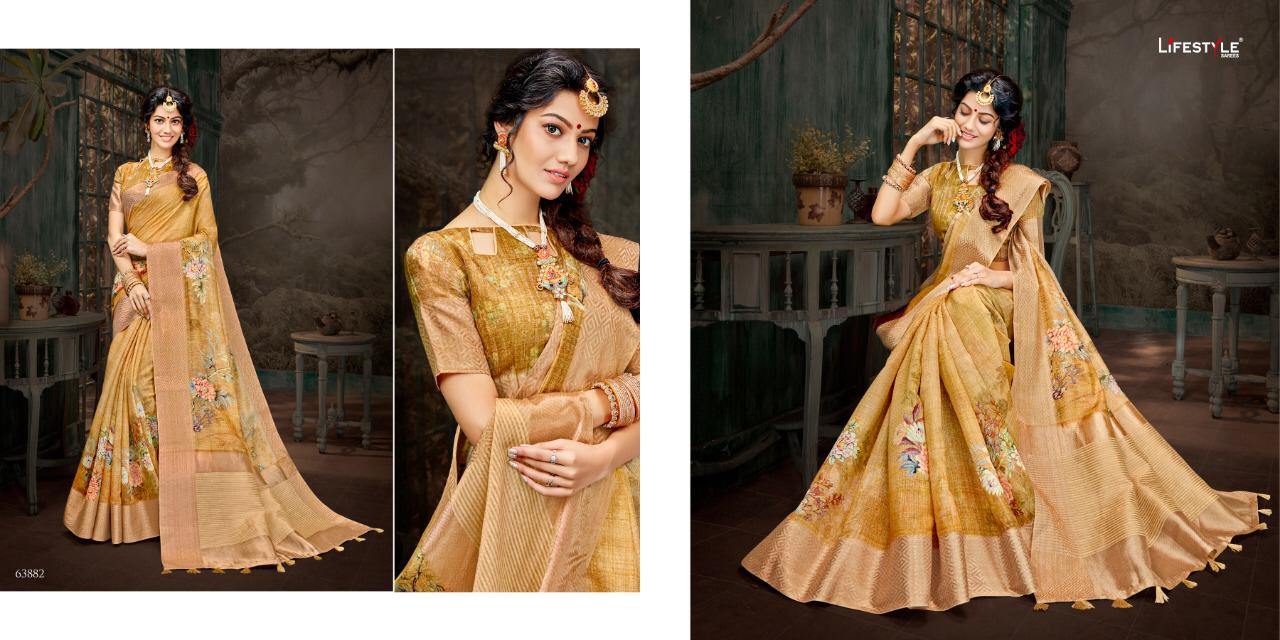 Lifestyle Saree Presents Latest Collection Launched on 18-10-2019. Presenting Beautiful collection of 6 PCS with Unstitched .