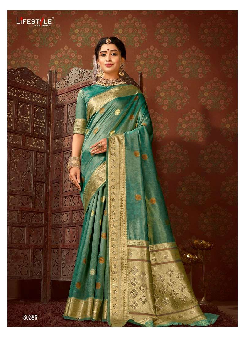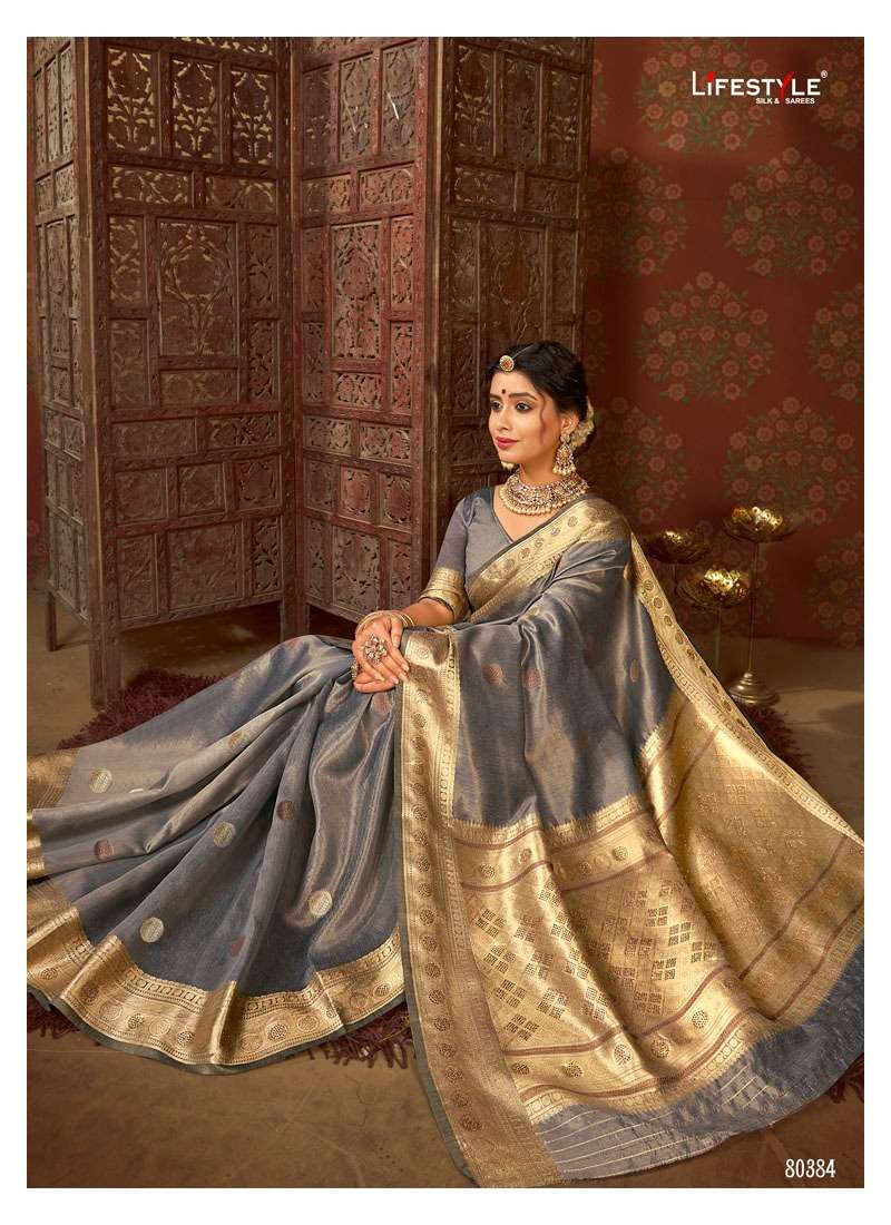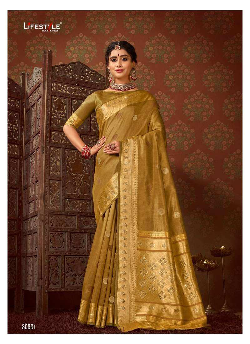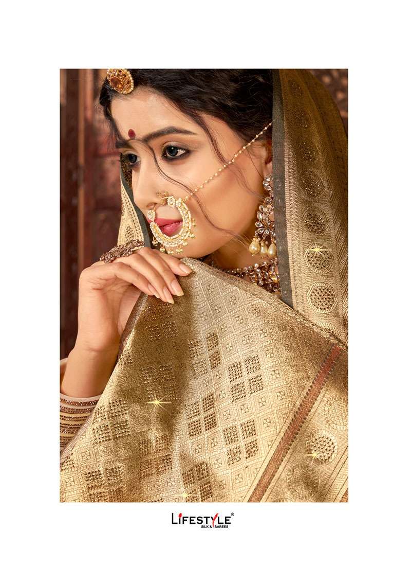 Brand = LIFESTYLE Catalog = PUSHPA SILK COTTON TISSUE DOUBBLE JARI |