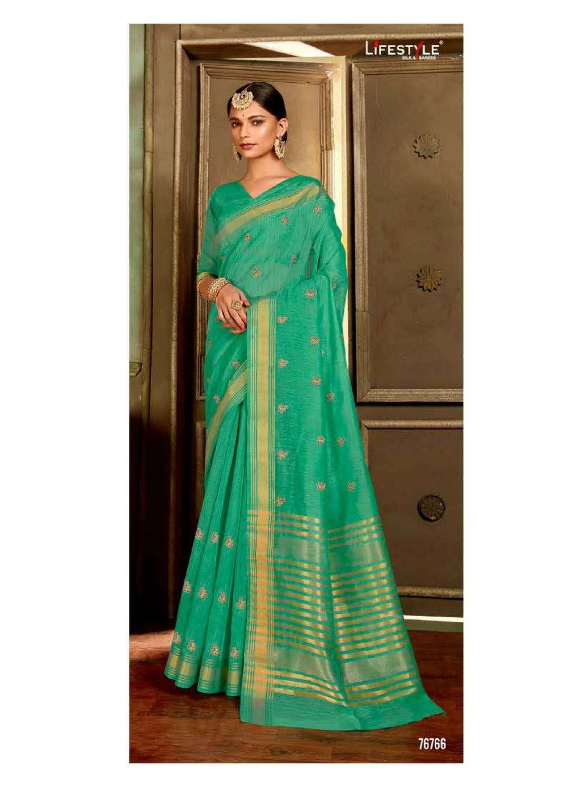 Brand = LIFESTYLE Ex-mill Price :- 715/- per pcs Cut/Length :- 6.40 FANCY CHANDERI SILK SAREE WITH EMBROIDERY PACKING - Today |