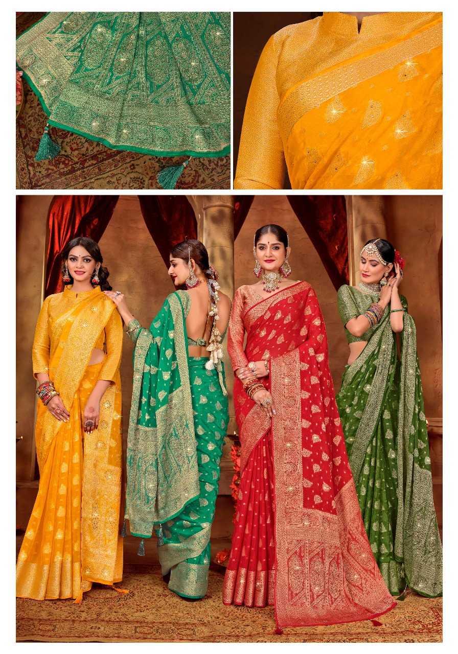 lifestyle tejaswani vol 4 25011-25014 beautiful nylon shimmer chiffon sarees