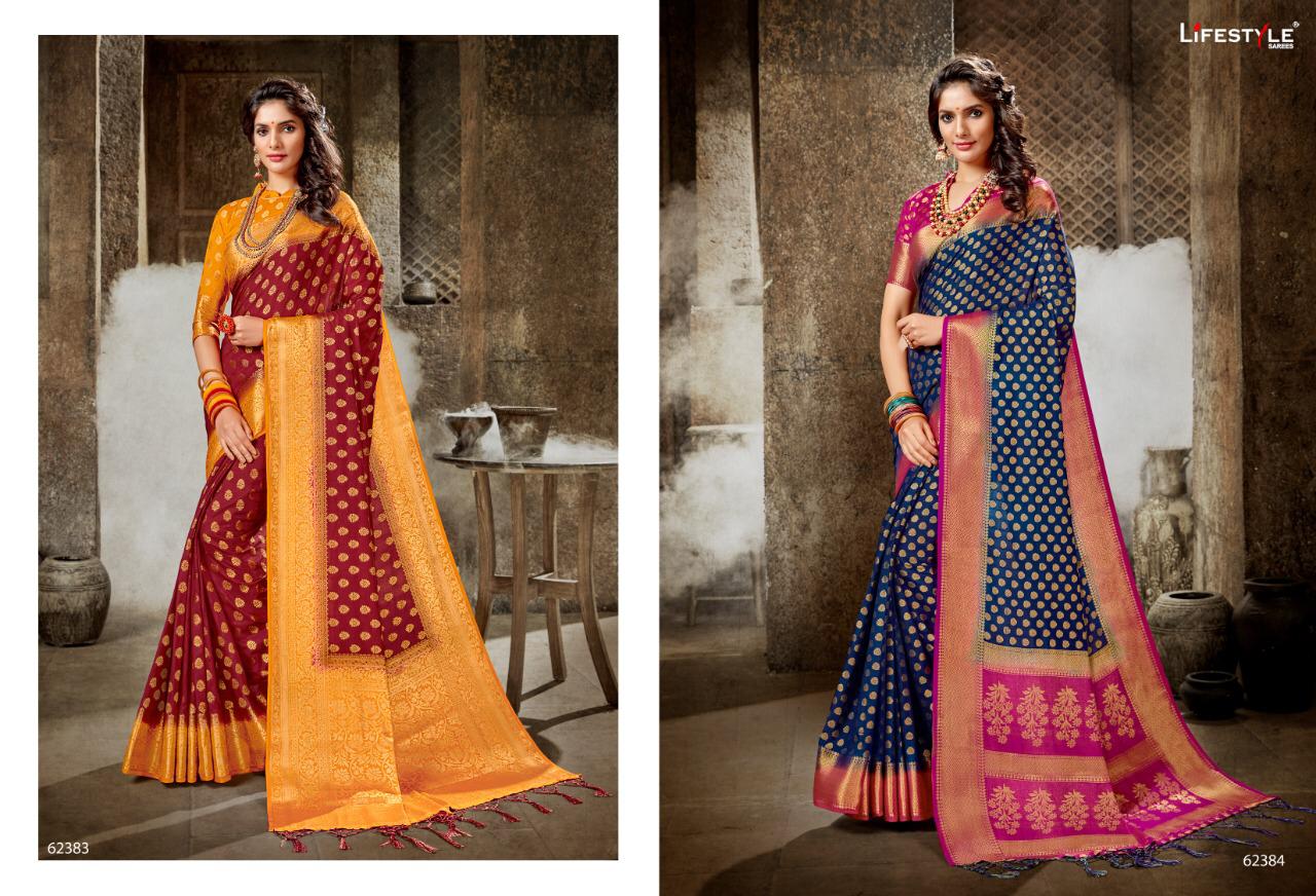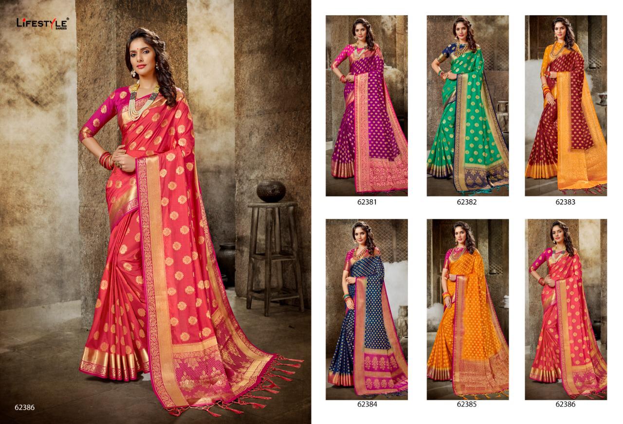 Lifestyle Saree Presents Latest Collection Launched on 02-10-2019. Presenting Beautiful collection of 6 PCS with Unstitched .