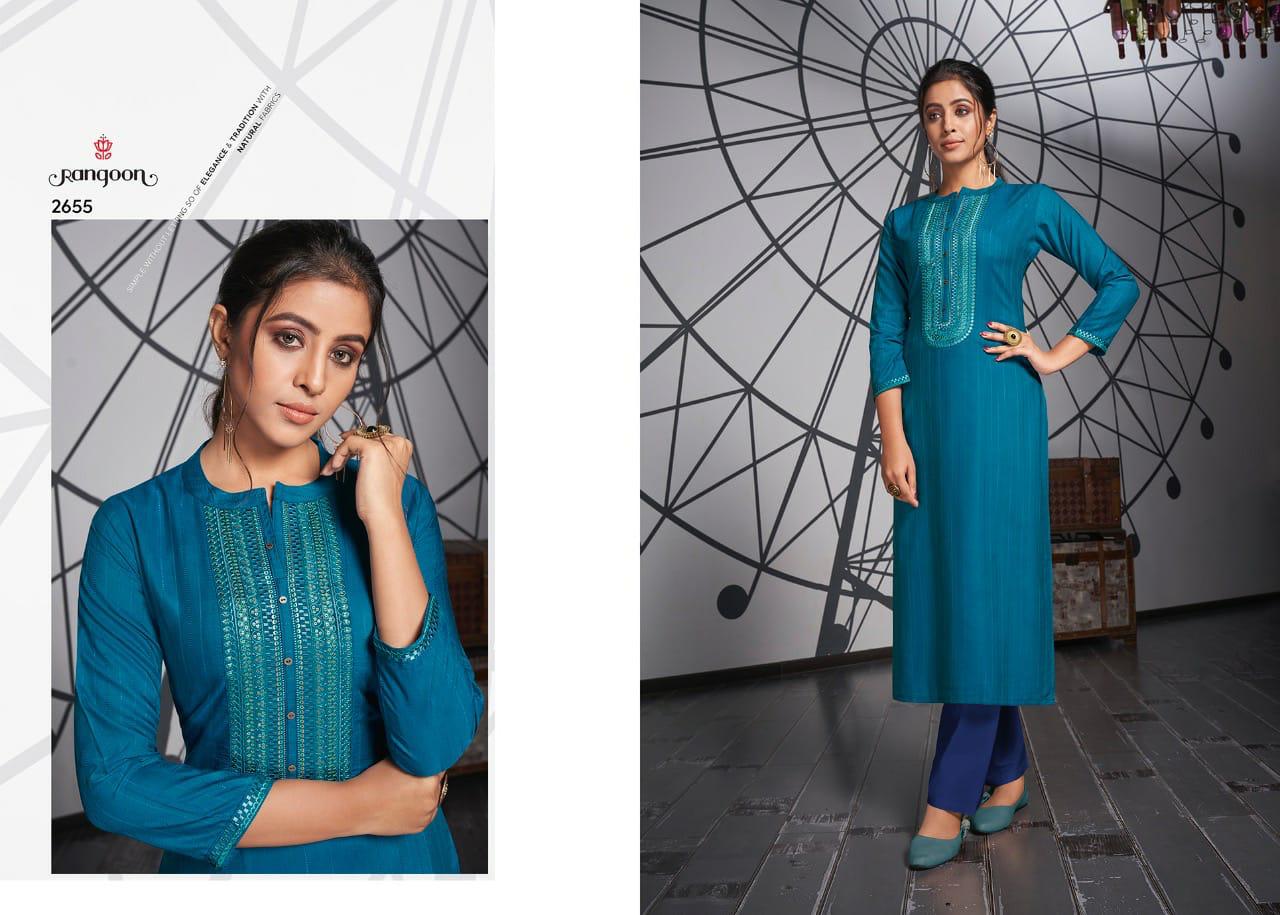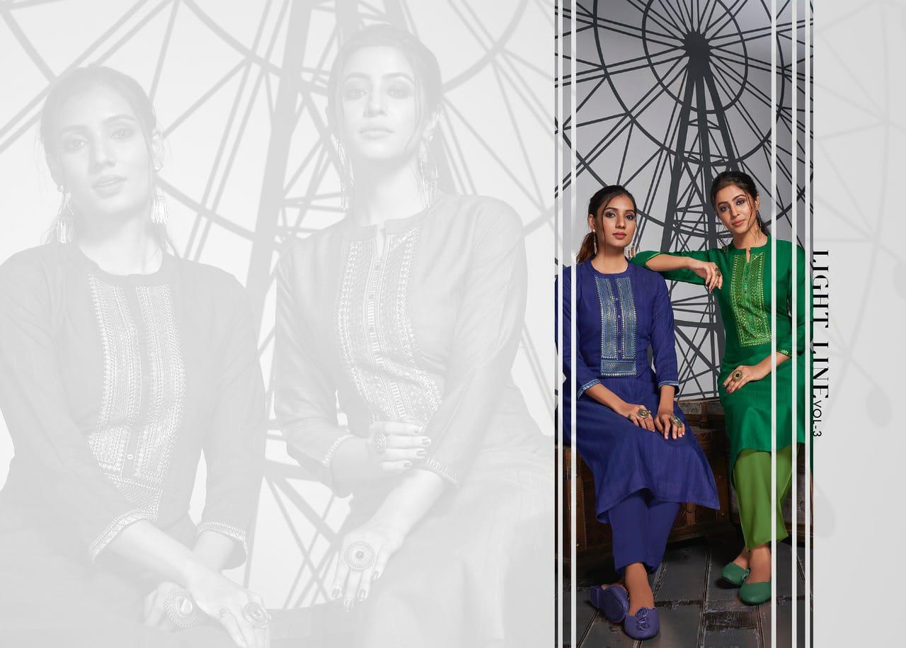 Light Line Vol 3 By Rangoon Fancy Lining Silk Work Casual Wear Kurti At Lowest Rate