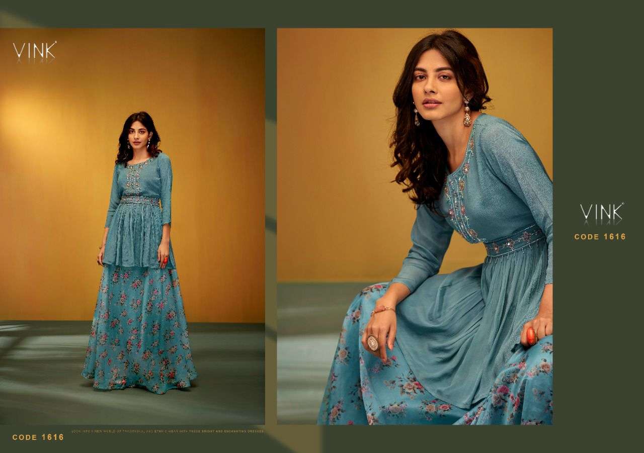 “LILAC BY VINK” PURE CHINNON CHIFFON PEPLUM WITH ORGANZA SKIRT & HANDWORK BELT. FABRIC - PURE VISCOSE CHINNON CHIFFON PEPLUM & ORGANZA DIGITAL SKIRT WITH HANDWORK BELT. RATE - ₹1595/- + GST. SIZES - L(40)-XL(42)-2XL(44)-3XL(46). 6 DESIGNS. PREMIUM FESTIVE COLLECTION! |