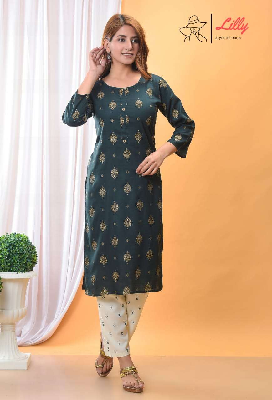 lilly style of india meena combo set of kurti with pent collection