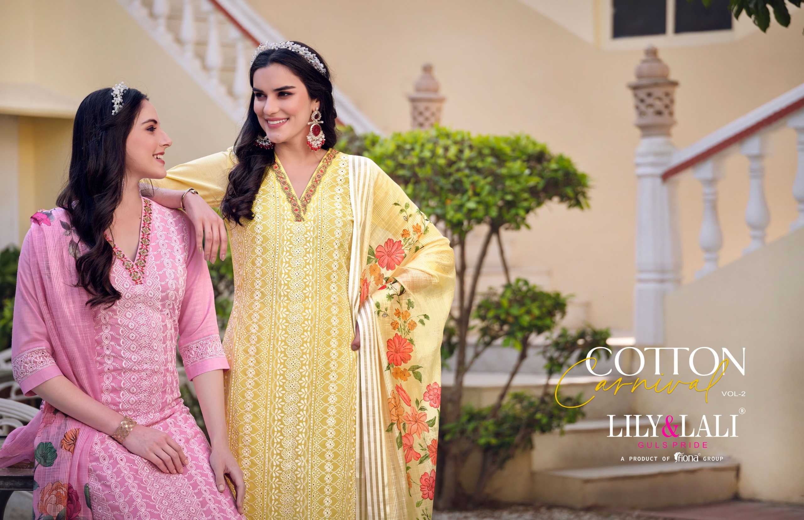 lily and lali cotton carnival vol 2 readymade elegant schiffli work kurti pant dupatta