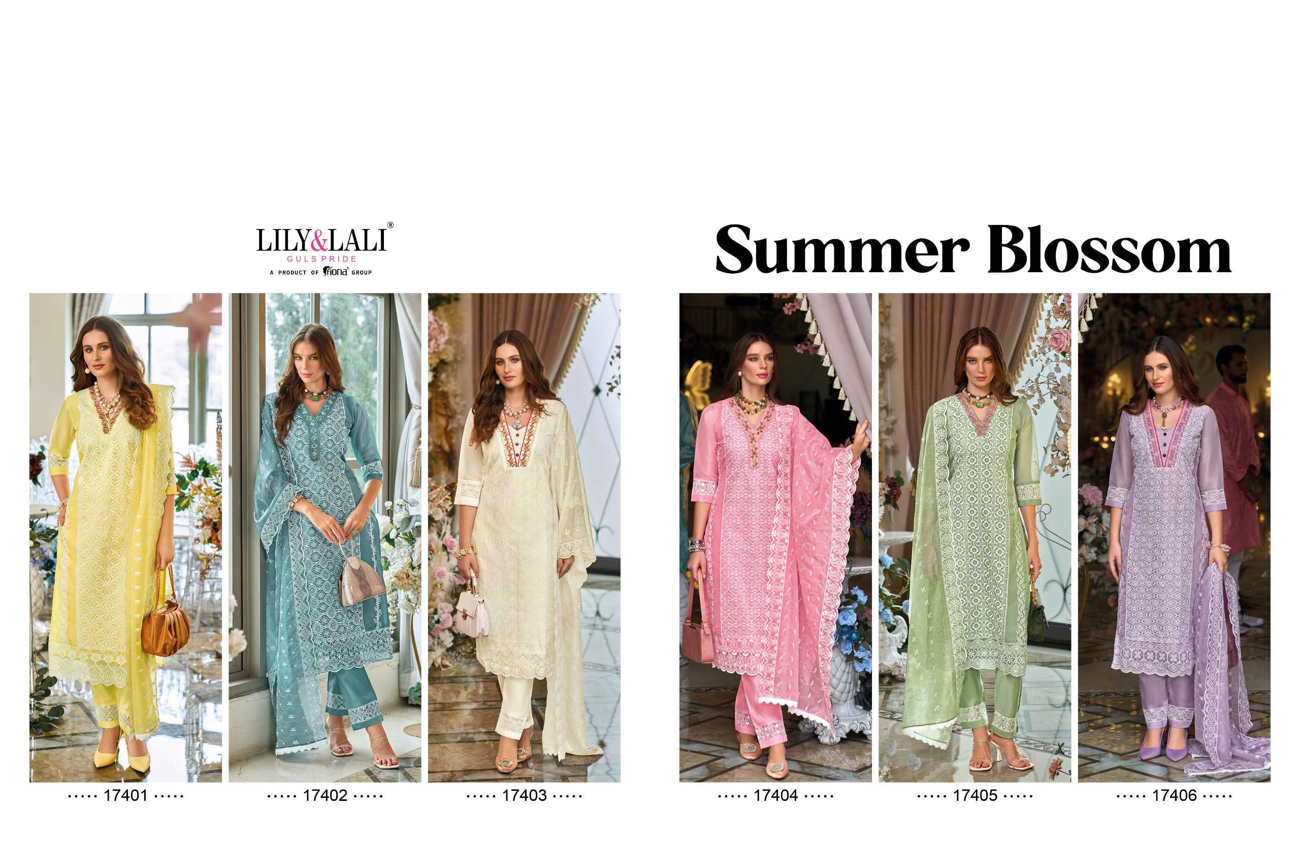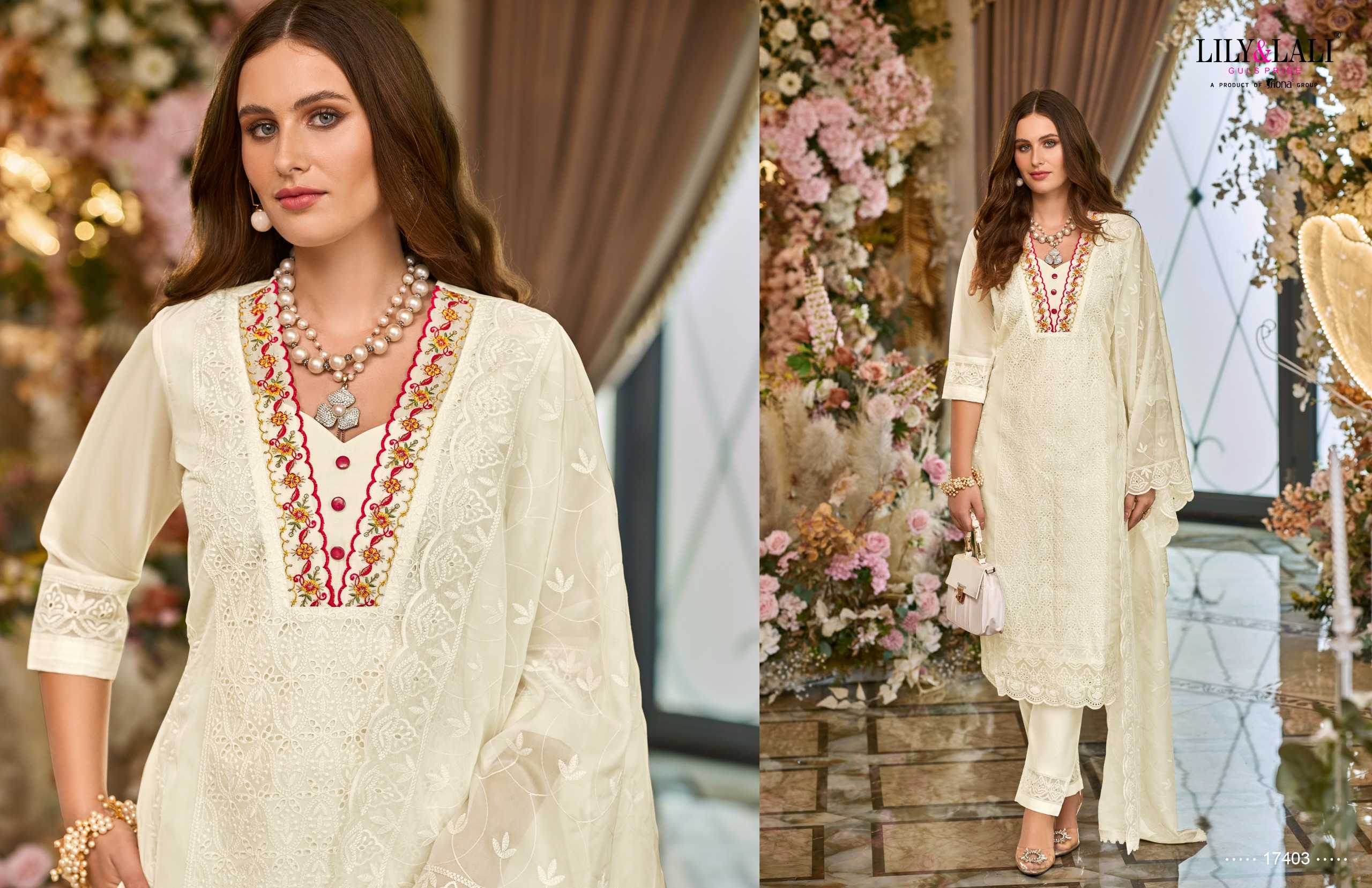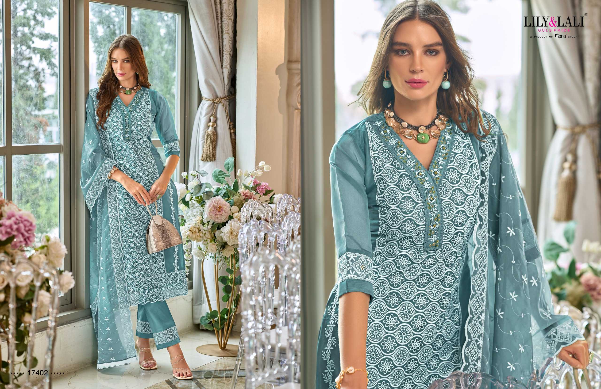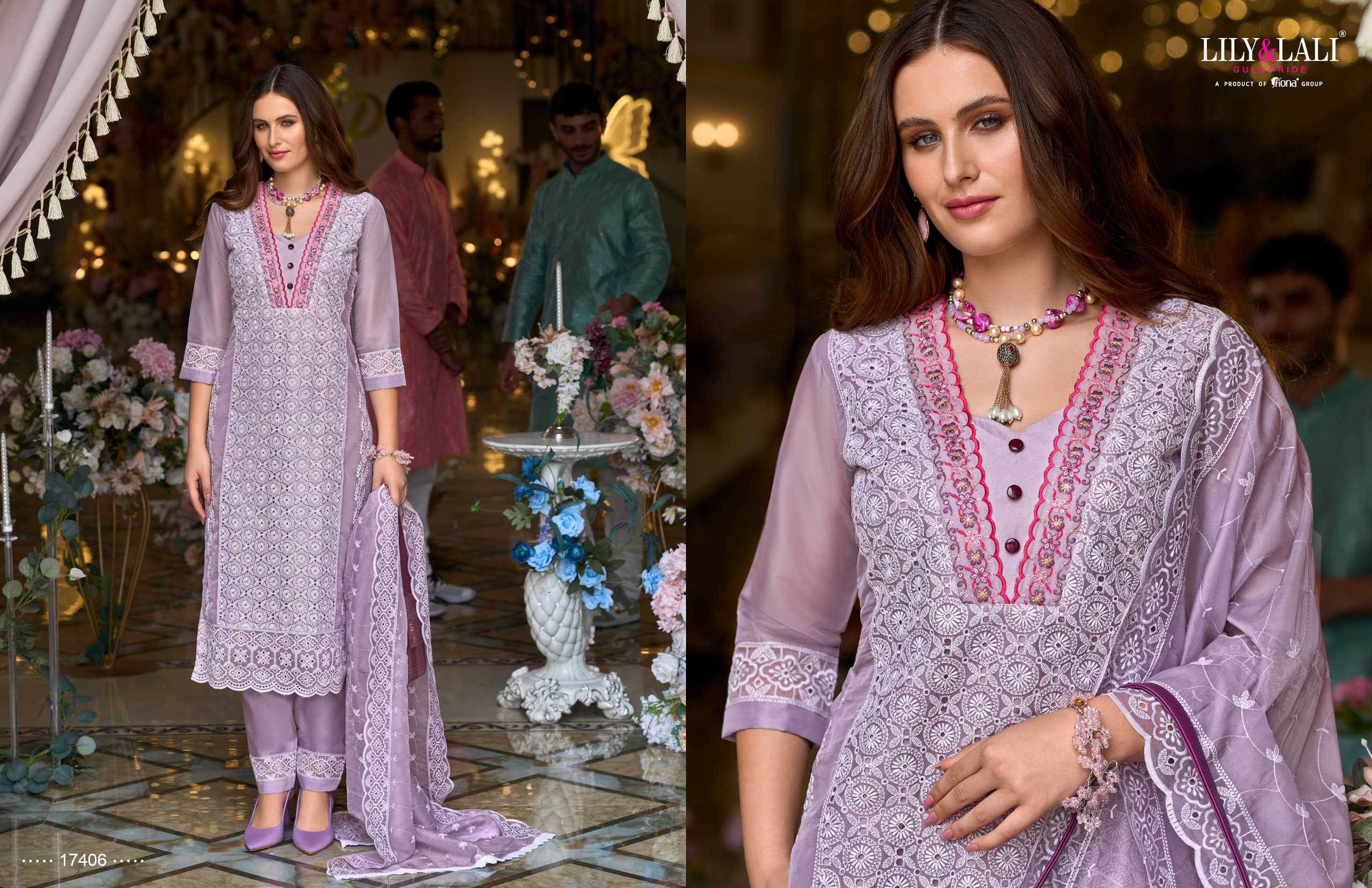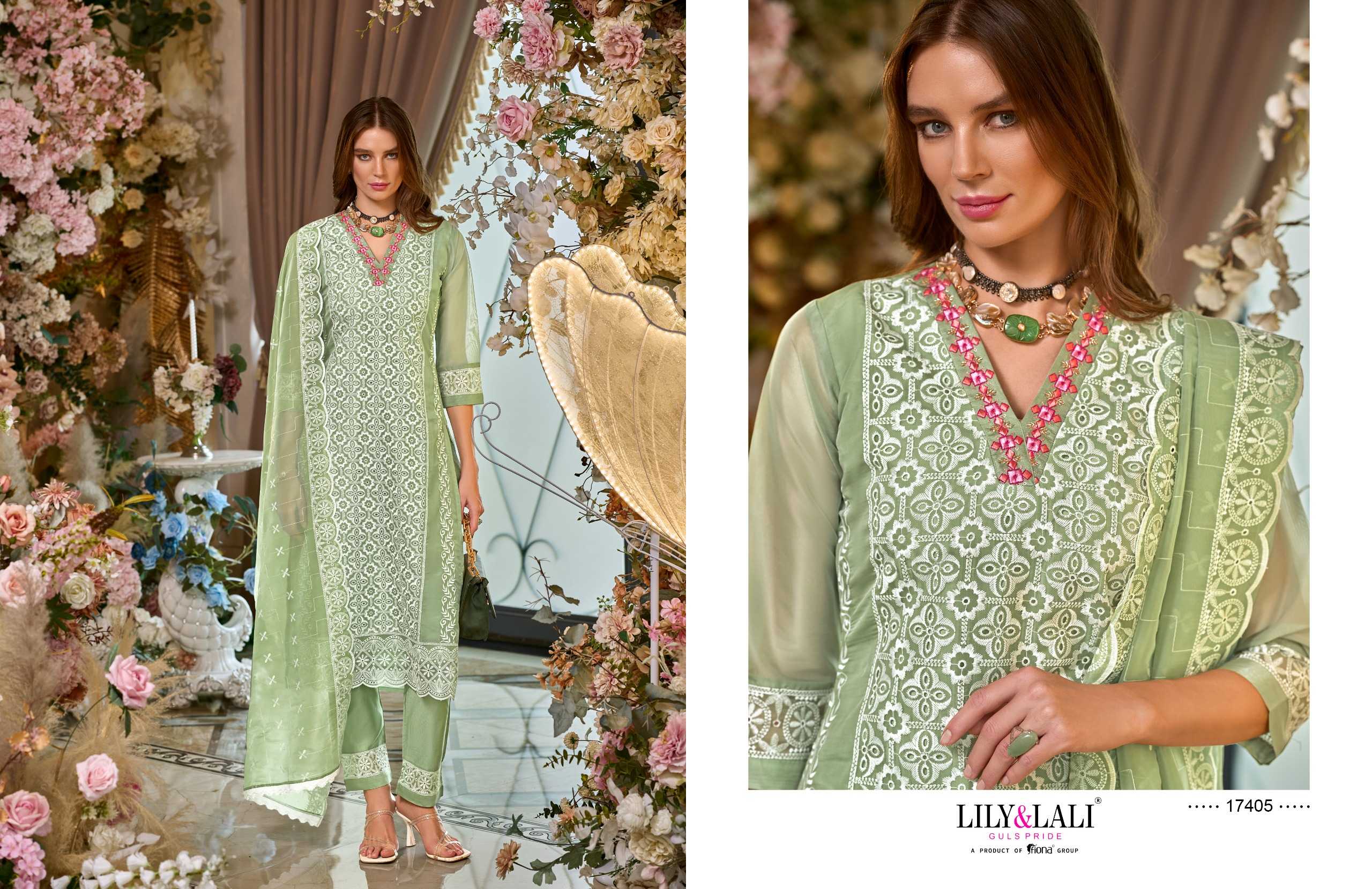 lily and lali summer blossom organza designer readymade 3 piece collection