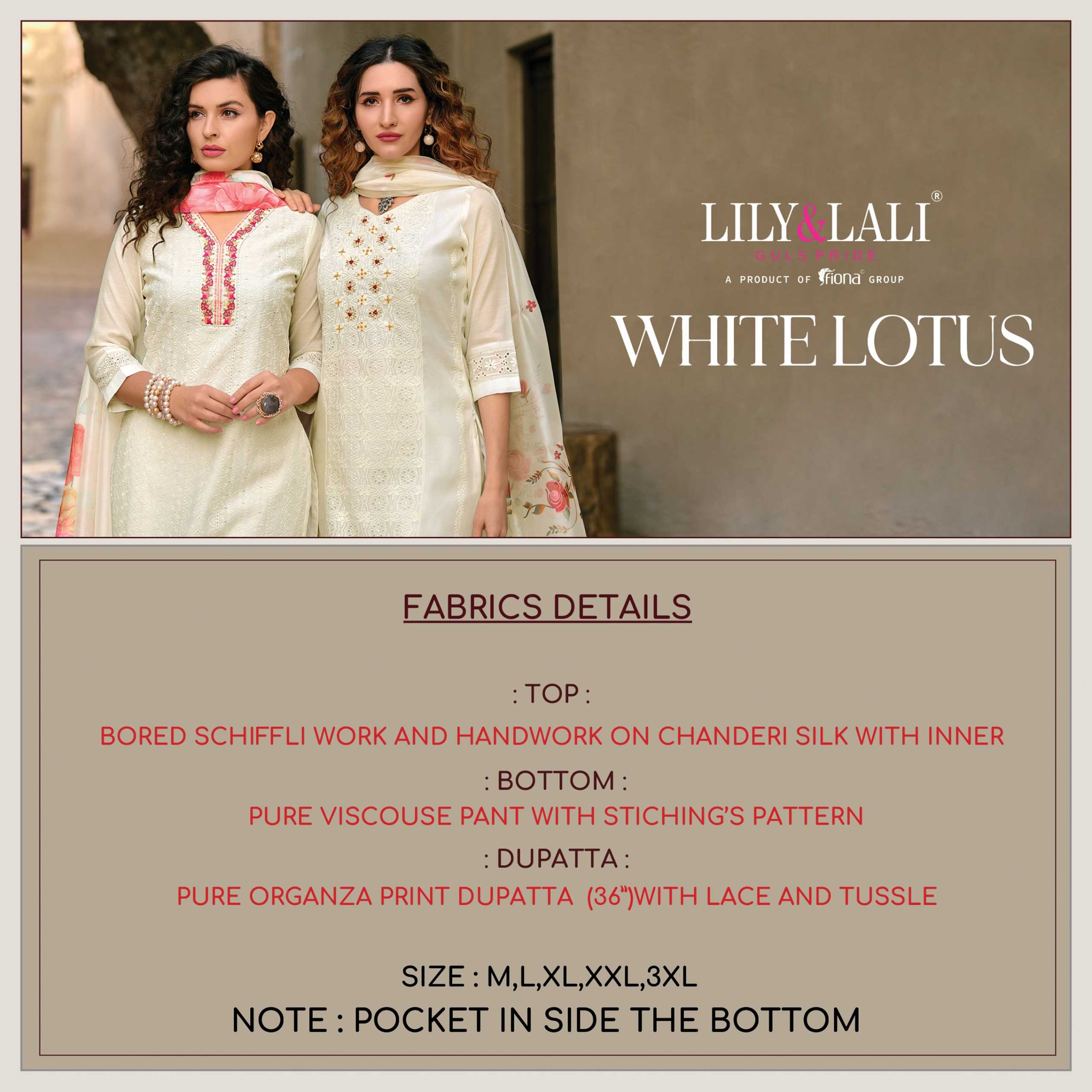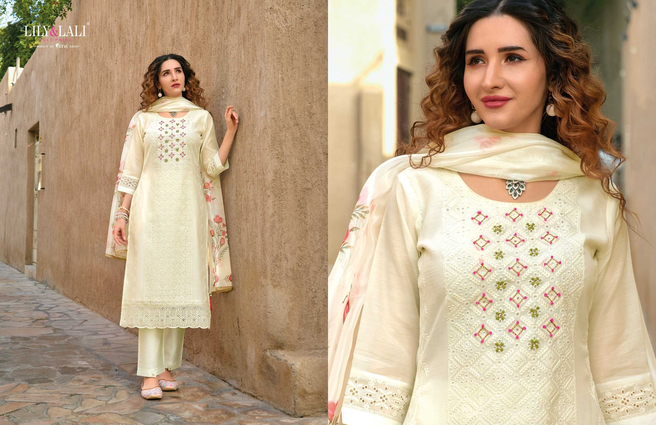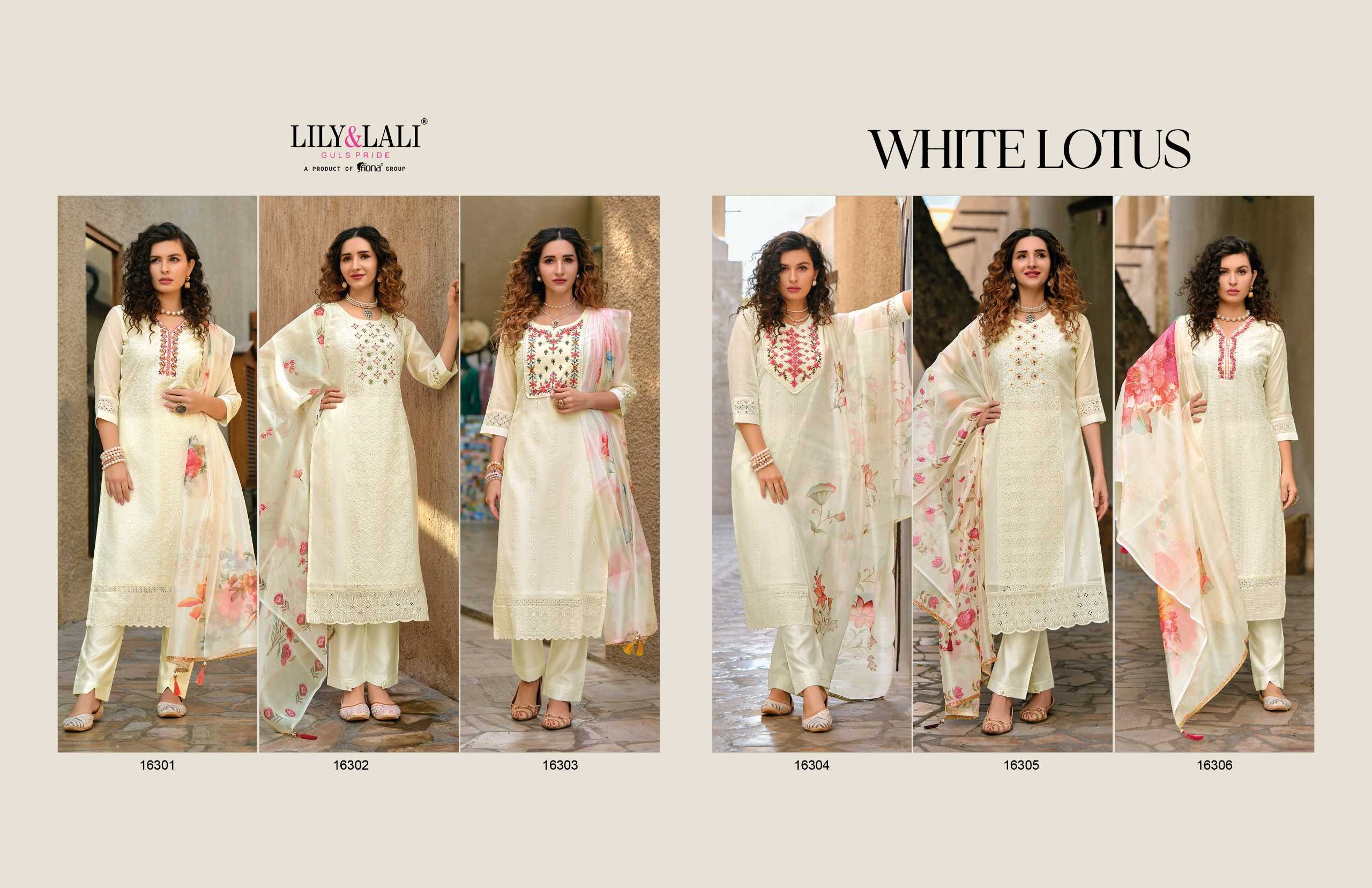 lily and lali white lotus readymade designer white special classy look kurti pant dupatta