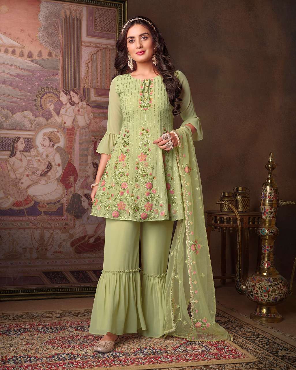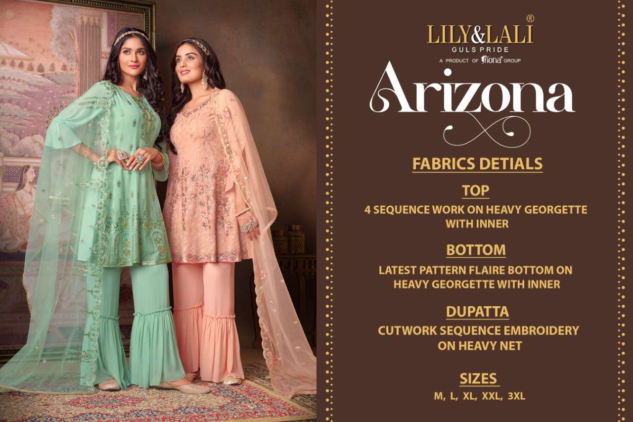 lily & lali launch arizona georgette full stitch fancy top pant with dupatta for special occasion