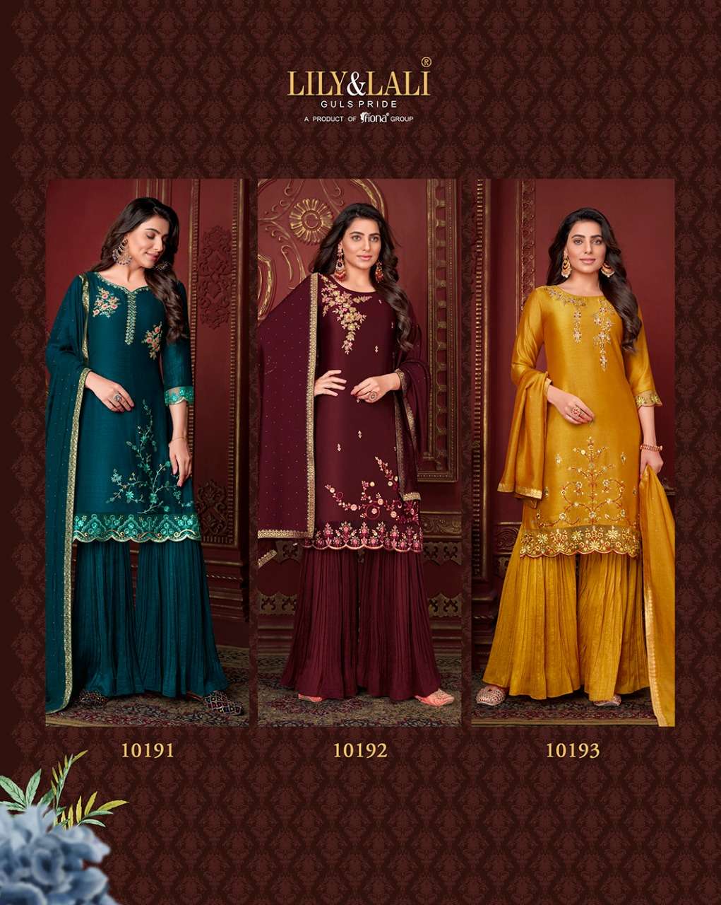 lily & lali malang exclusive readymade top bottom and dupatta set exports