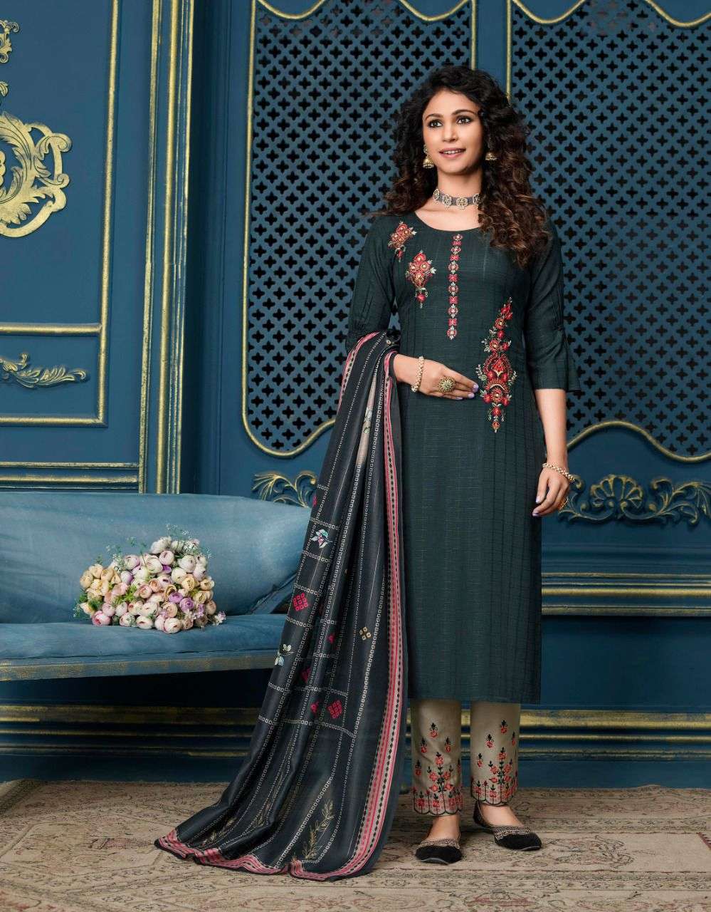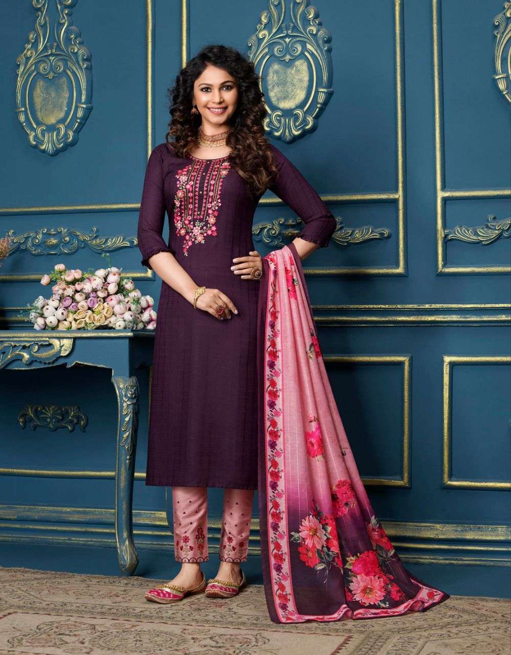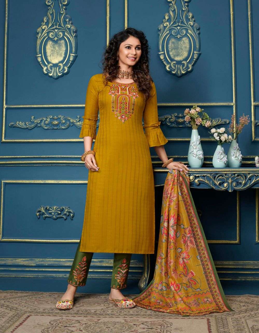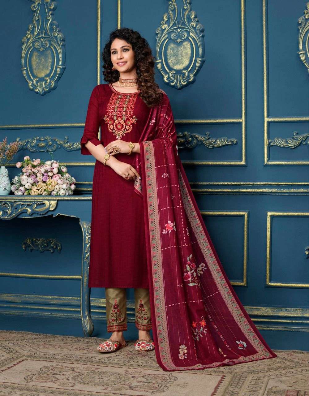 lily & lali meher readymade top with pant and dupatta set for women