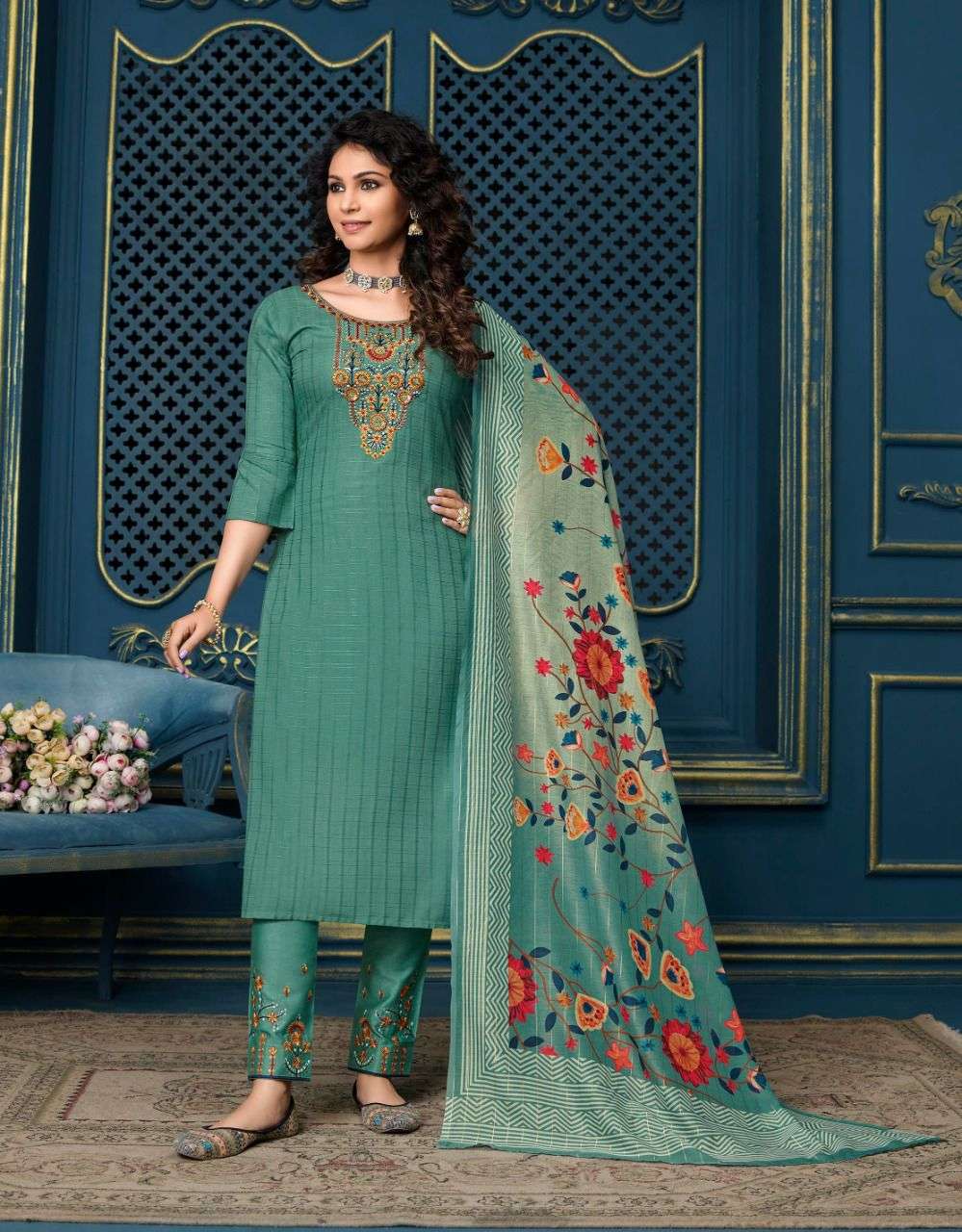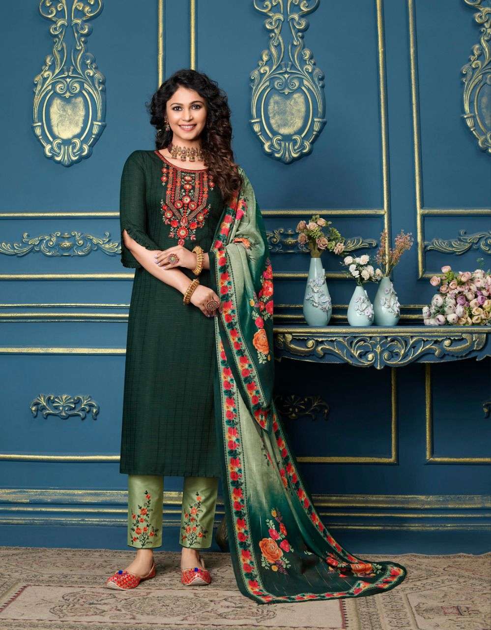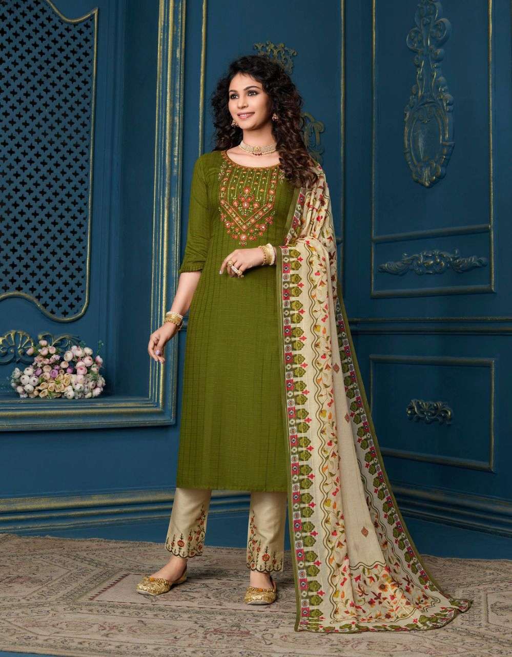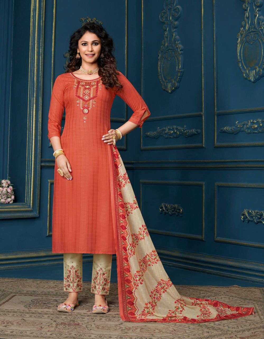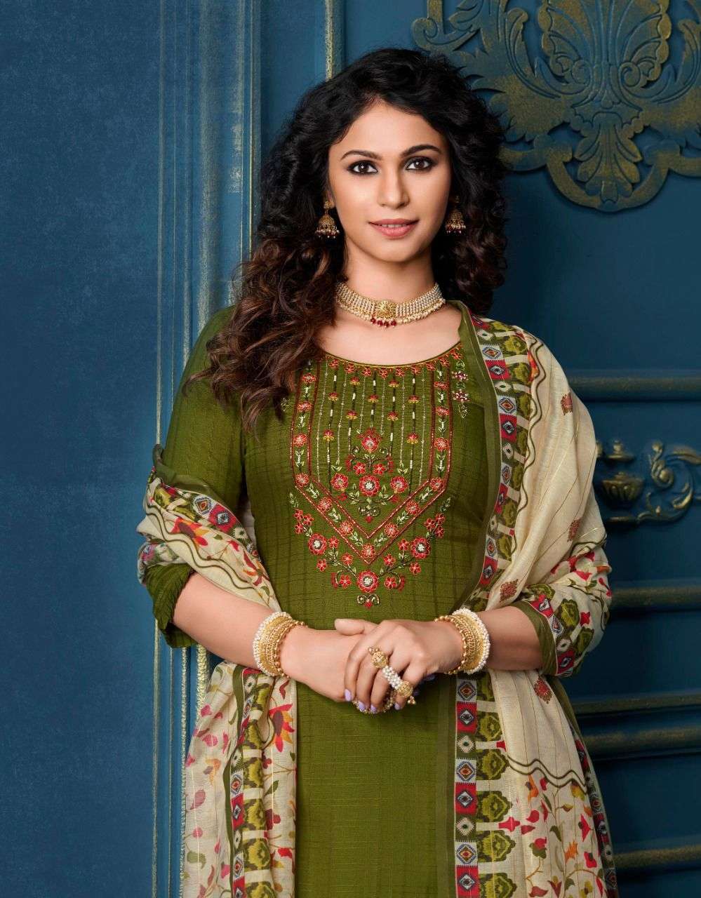 lily & lali meher readymade top with pant and dupatta set for women