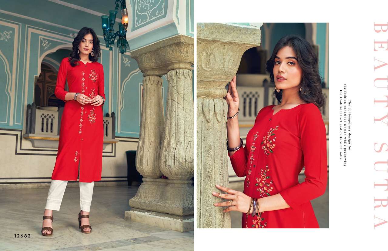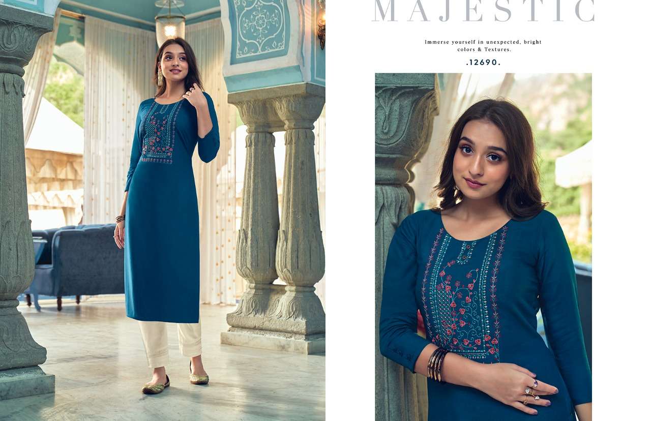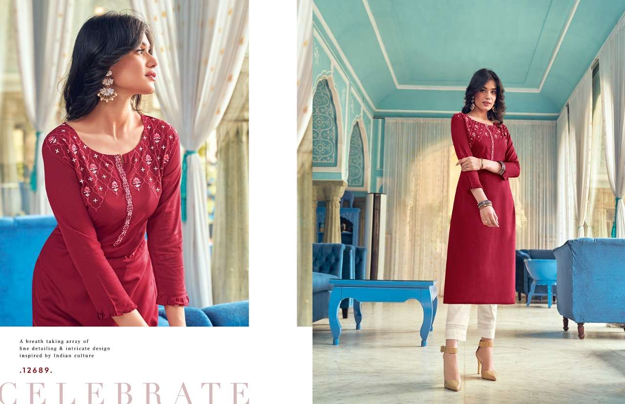 Kalaroop by Kajree has launched Catalog name: LILY VOL.20 Fabric Details Top:- Hevi fancy Rayon Embroidered Work Kurtis ( Only Top) (Length- 46') Total Design:- 10 Size:- M, L, XL, XXL,3XL Rate -350/= |