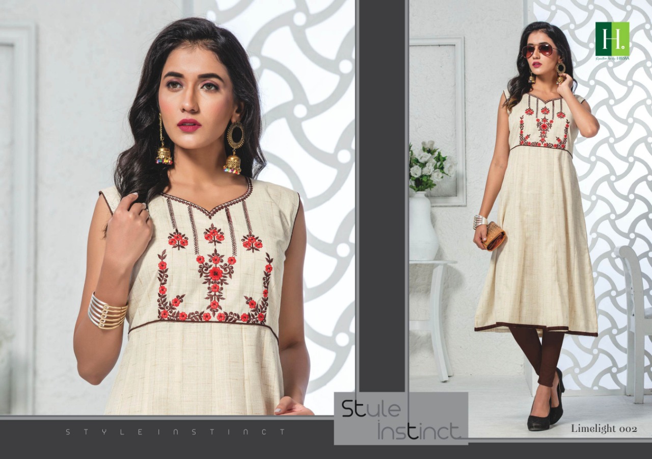 Limelight By Hirwa Cambric With Embroidery Anarkali Style Kurti Collection