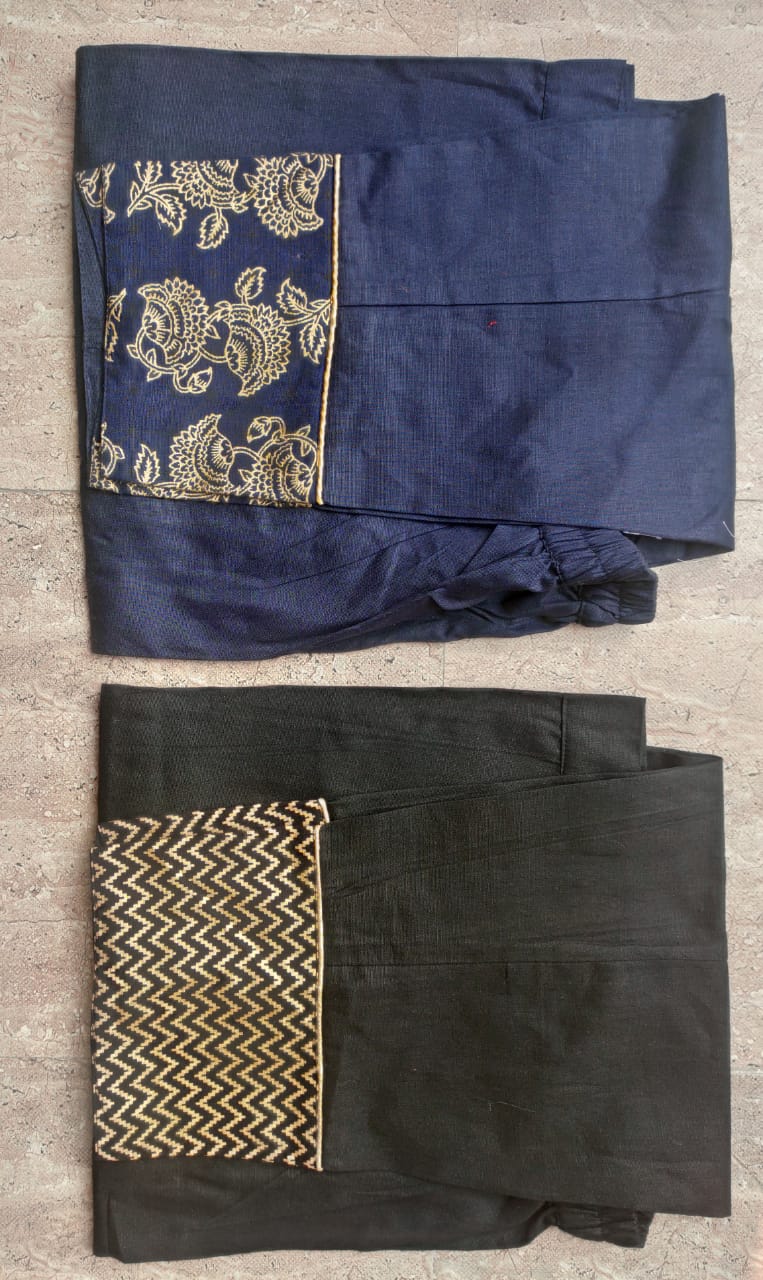 LINEN FOIL TROUSER Fabric: Cotton-Linen Blend Style: Ethnic USP1: Foil Print USP2: Golden Piping Lace Size: 32 (L) • 34 (XL) 36 (XXL) • 38 (3XL) Available in 2 colours wholesale price ₹375/- GST 5% EXTRA Happy Selling |