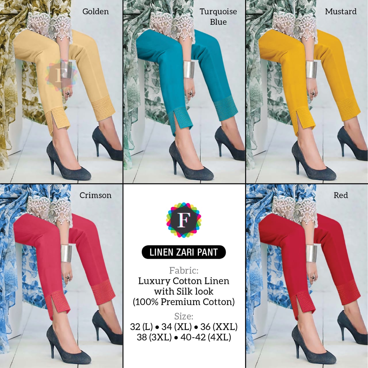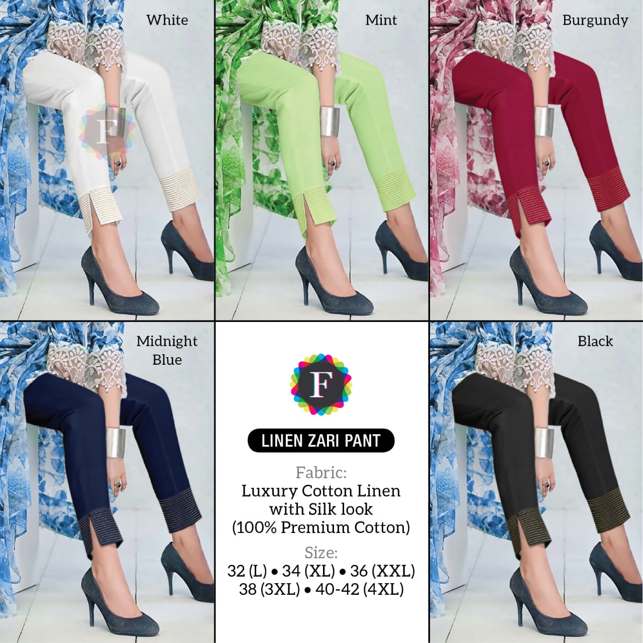 Linen Zari Pant Cotton Linen With Silk Look Bottom Wear Ladies Pant