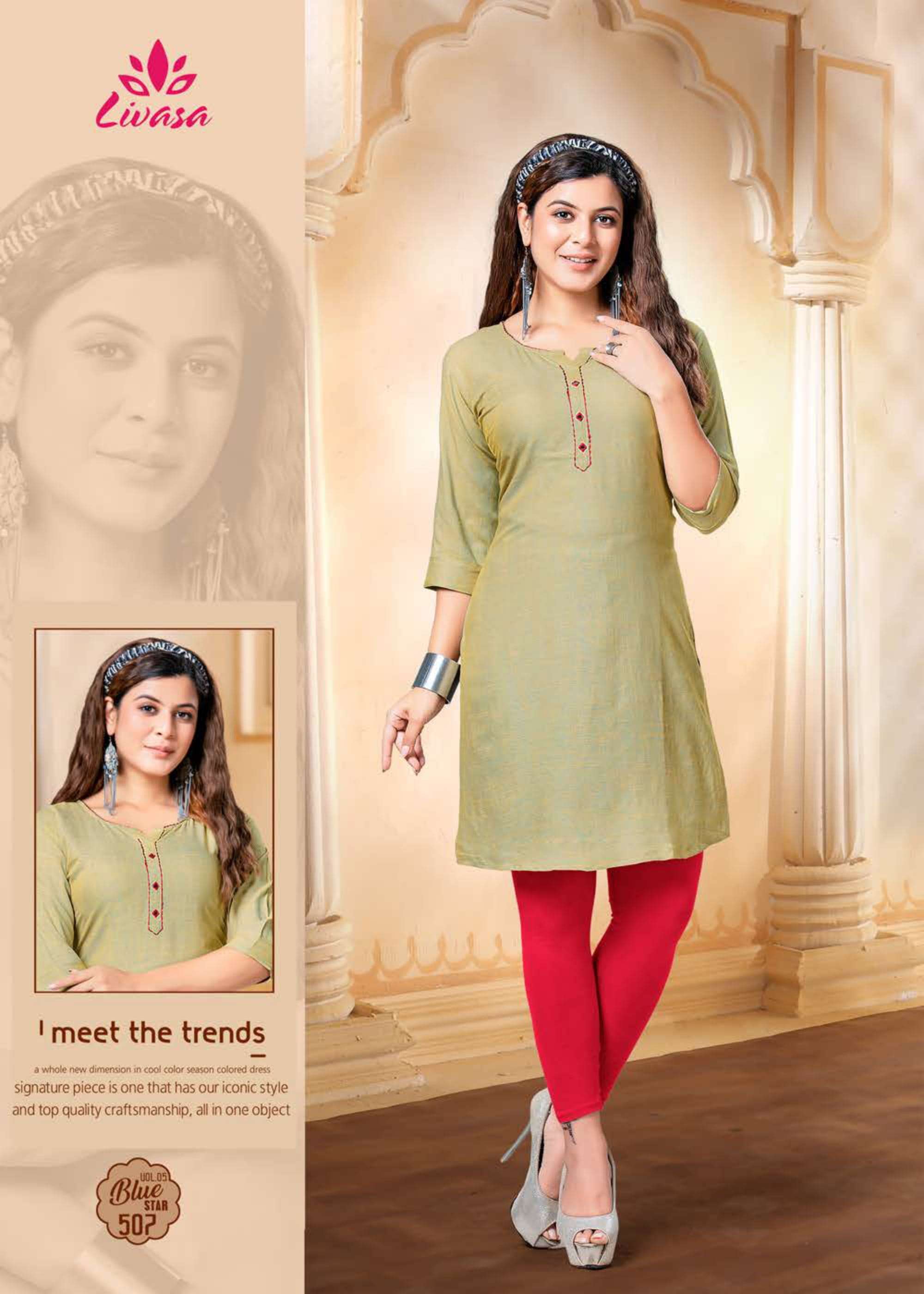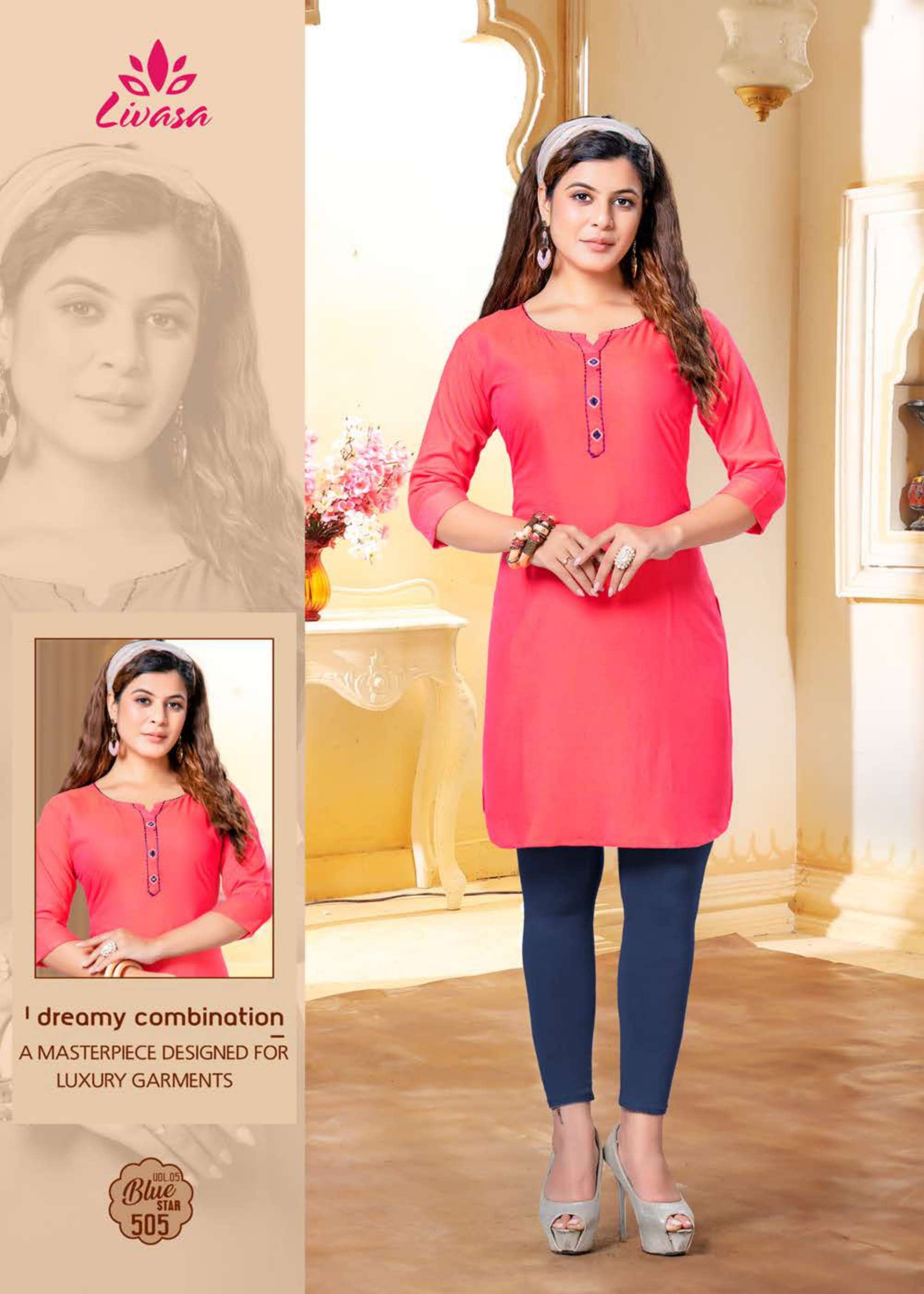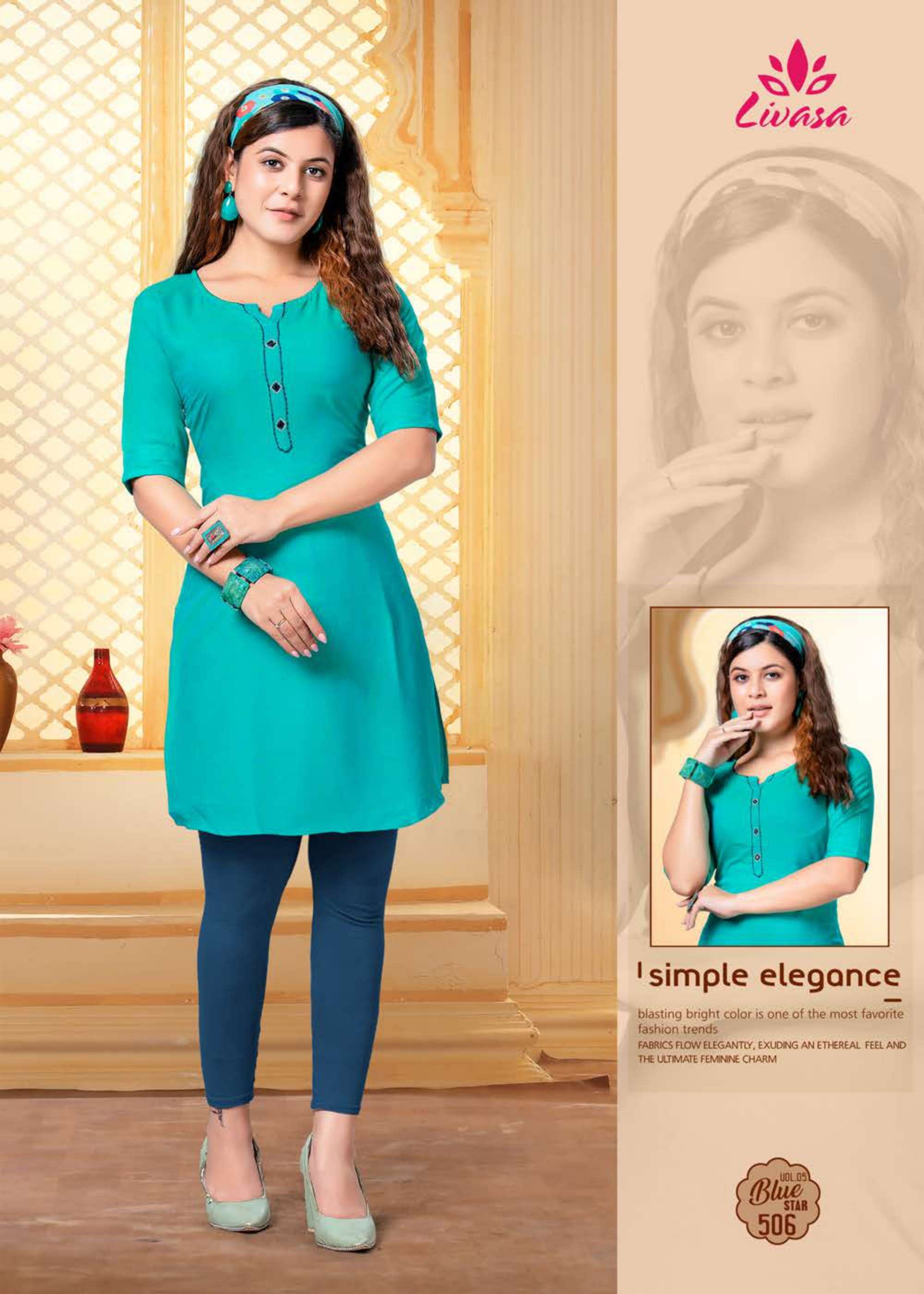Dear Customers, Greetings from LIVASA 📕Catalogue:- BLUE STAR VOL-5 👗cloth :- 14 kg Rayon TWO TONE Concept :- SHORT KURTIS with KATHA WORK and MIRROR WORK Rate:- 265/- Size:- L, XL,XXL 08 DESIGNS CATALOGUE |