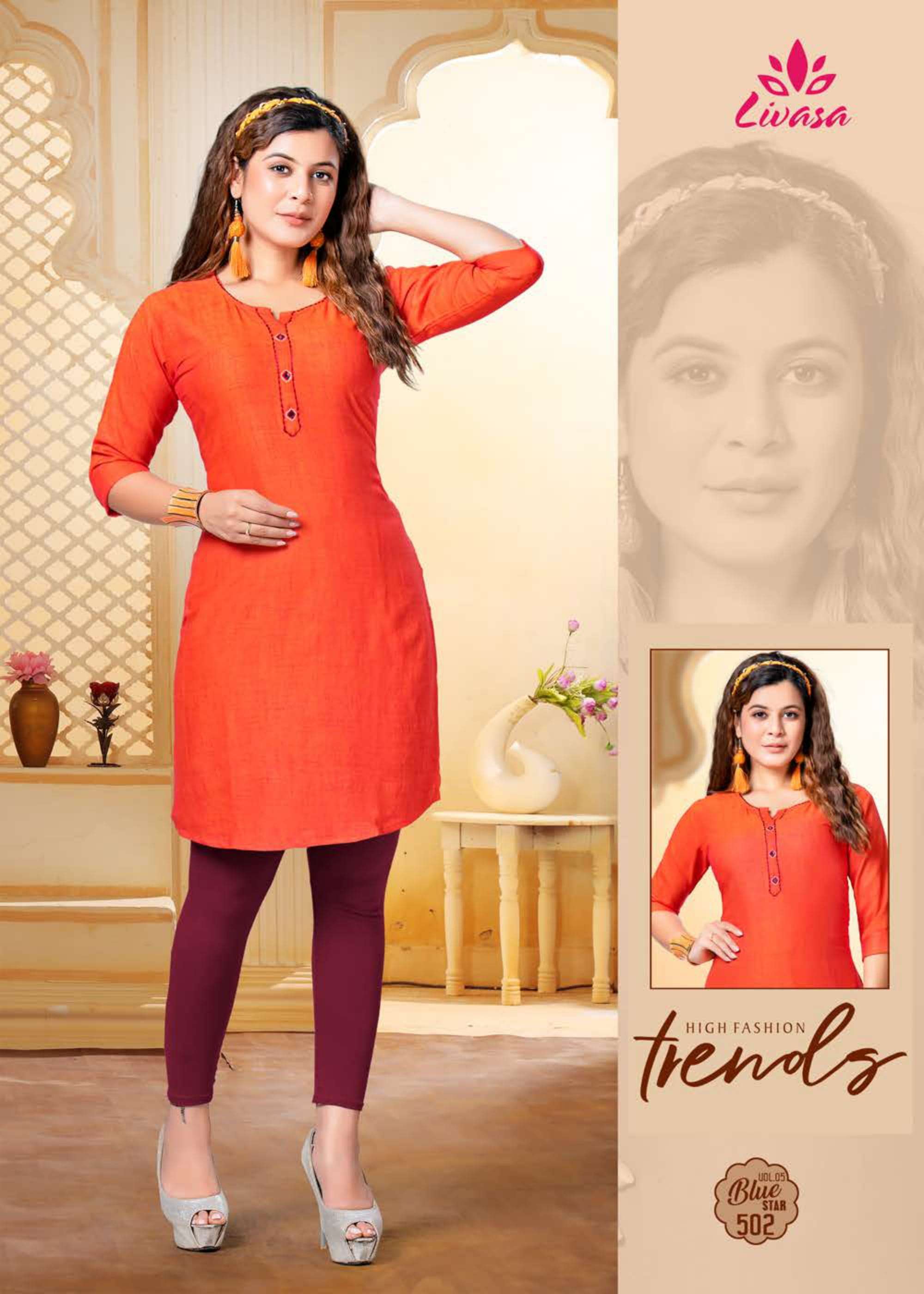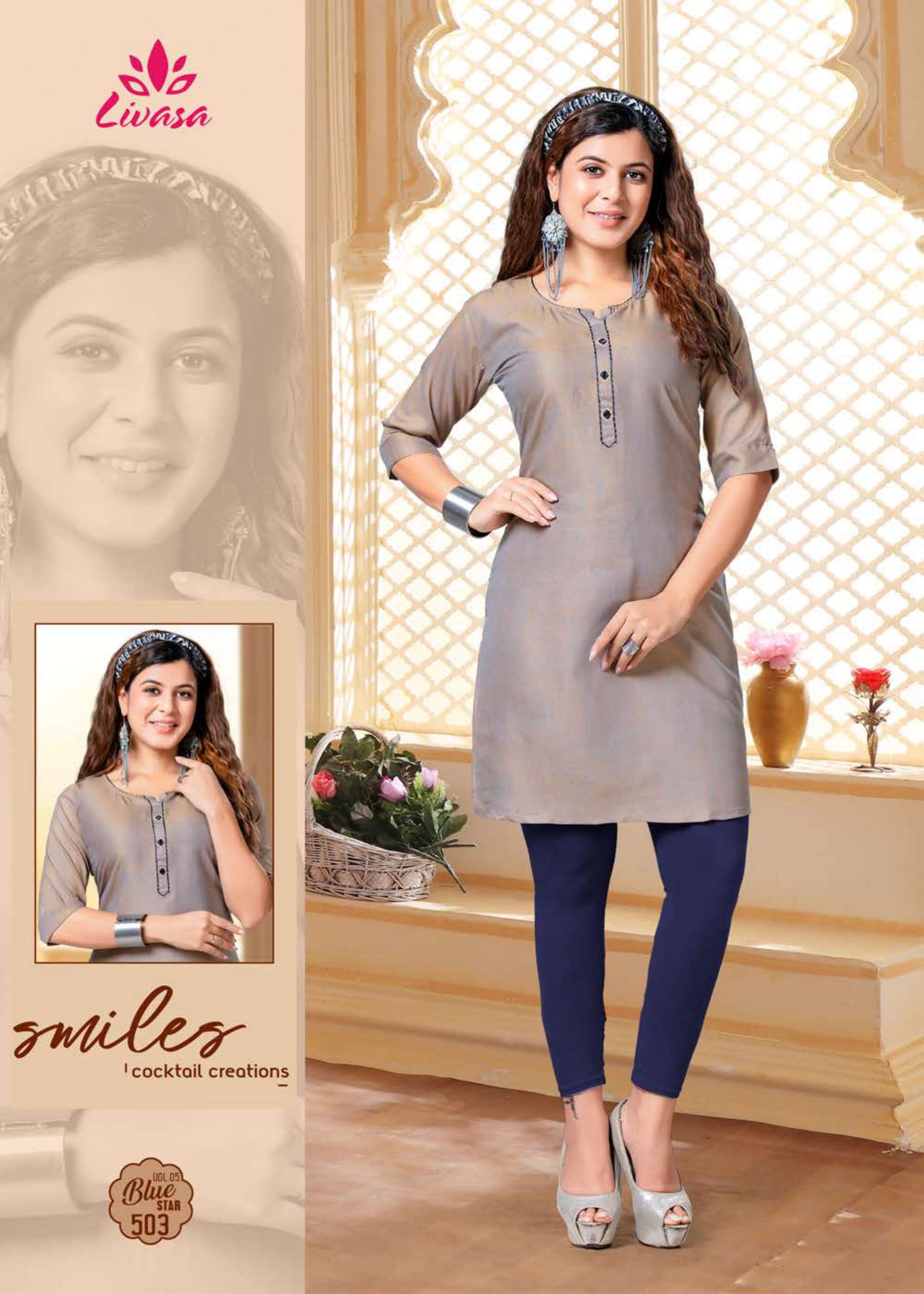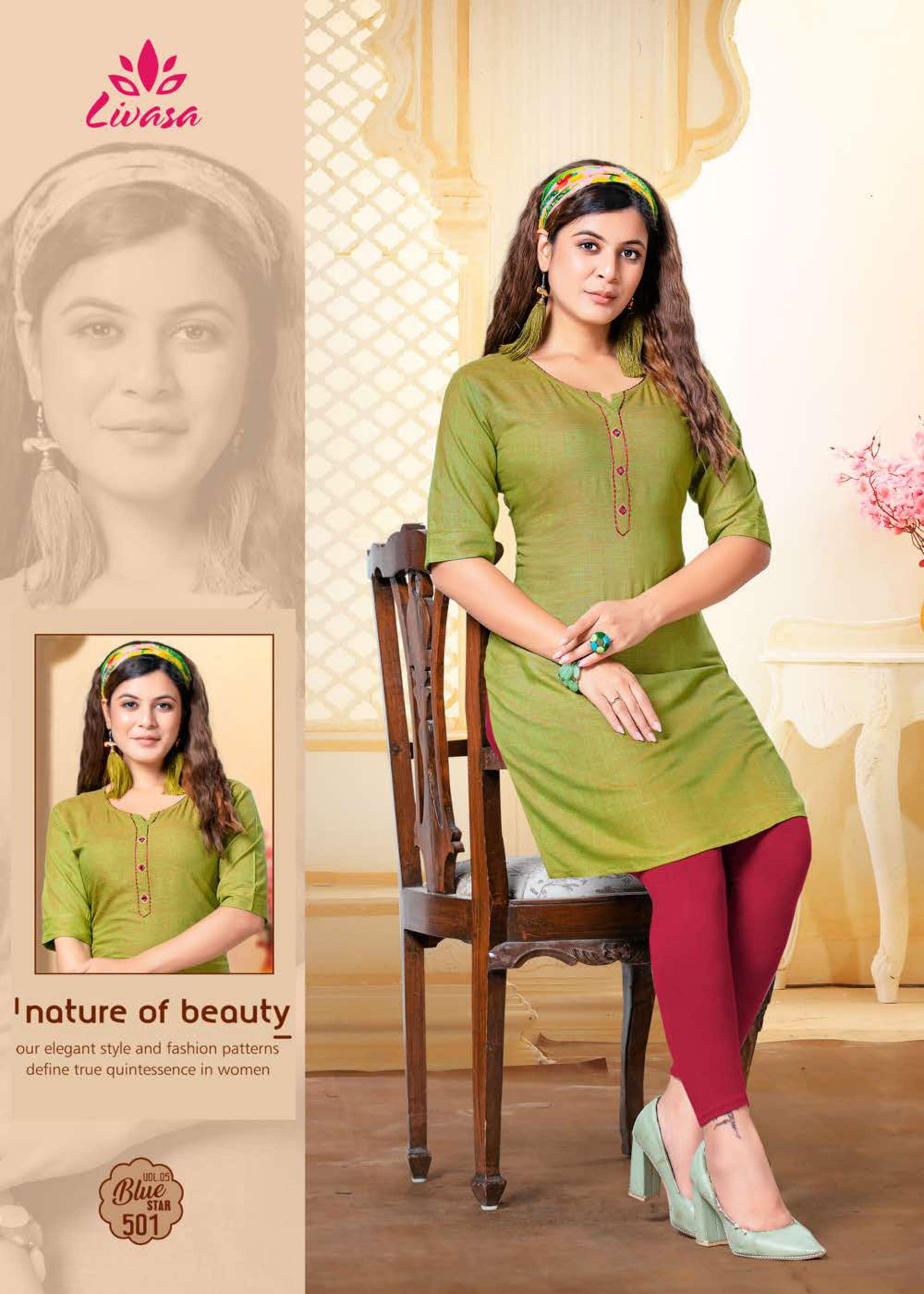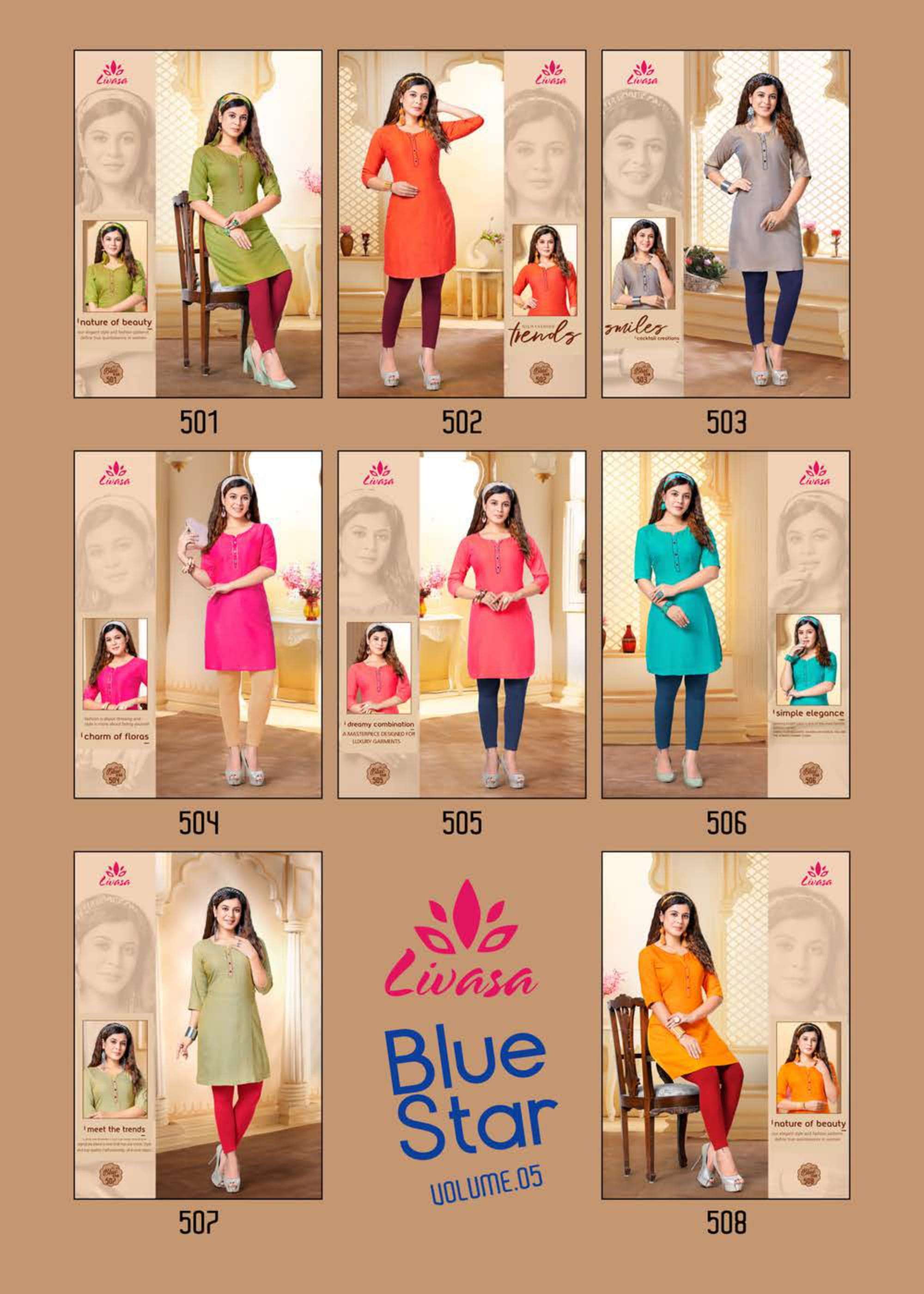 Dear Customers, Greetings from LIVASA 📕Catalogue:- BLUE STAR VOL-5 👗cloth :- 14 kg Rayon TWO TONE Concept :- SHORT KURTIS with KATHA WORK and MIRROR WORK Rate:- 265/- Size:- L, XL,XXL 08 DESIGNS CATALOGUE |