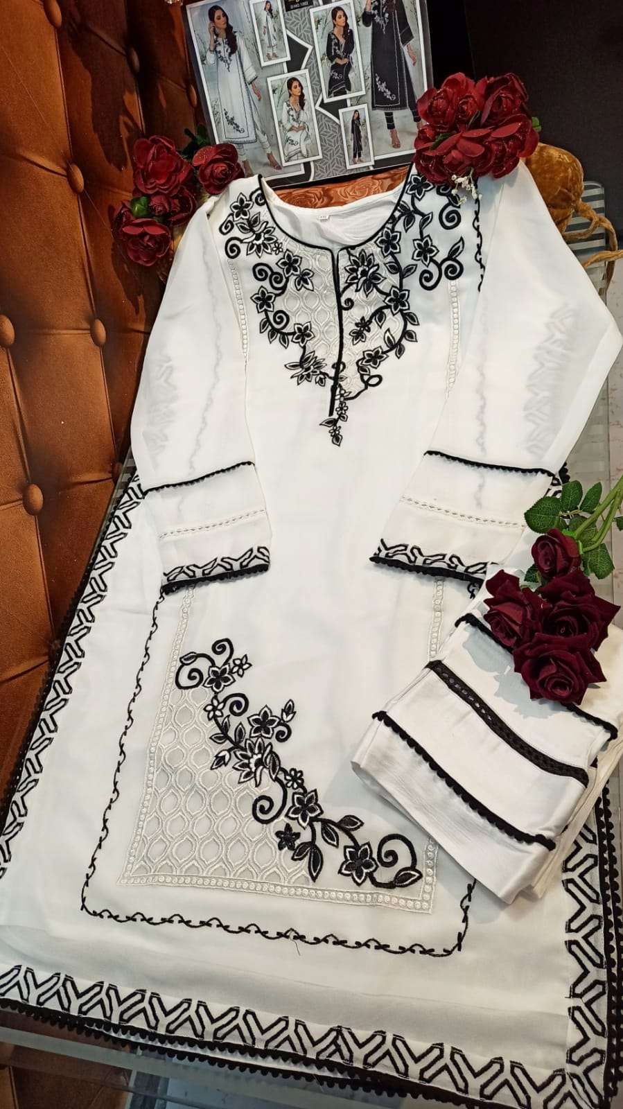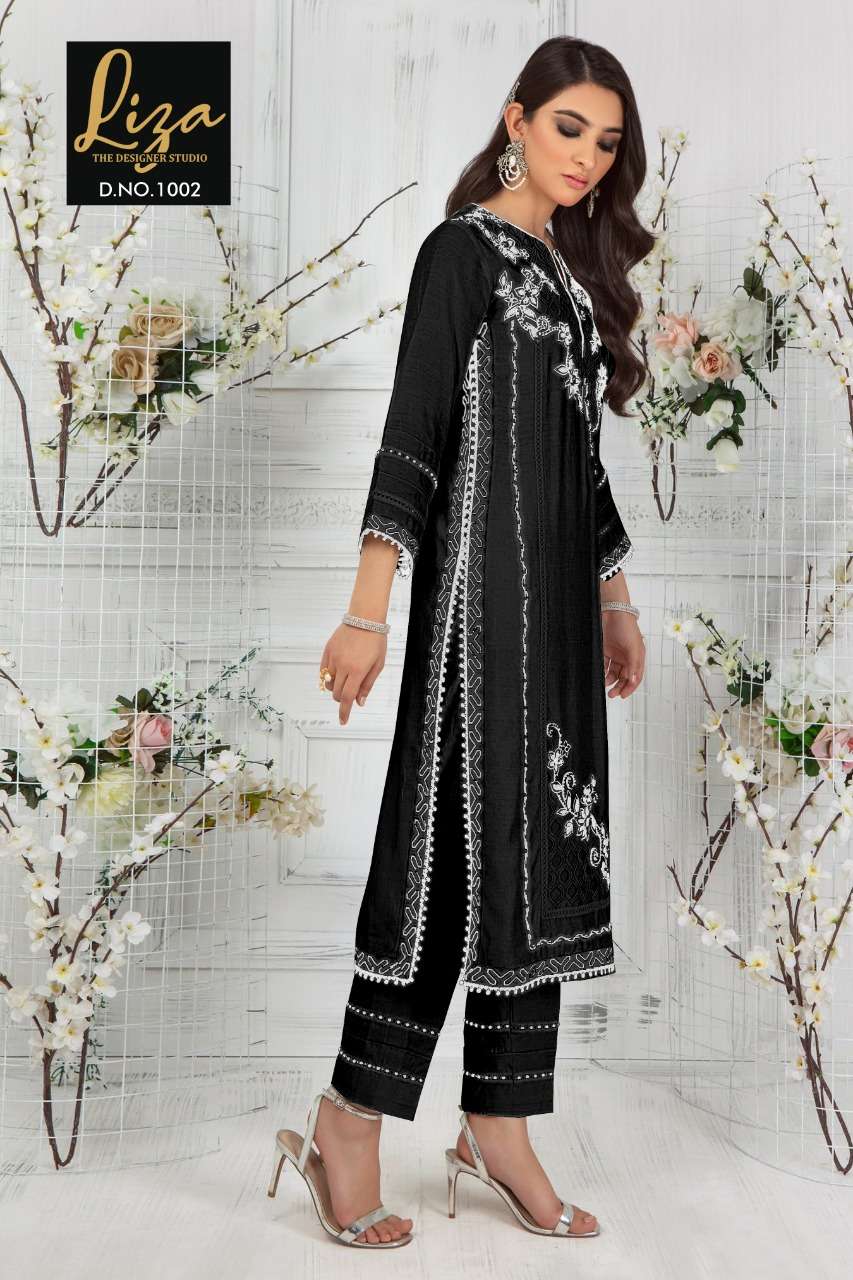 liza the designer studio present d no 1002 georgette black & white pakistani kurti with pant