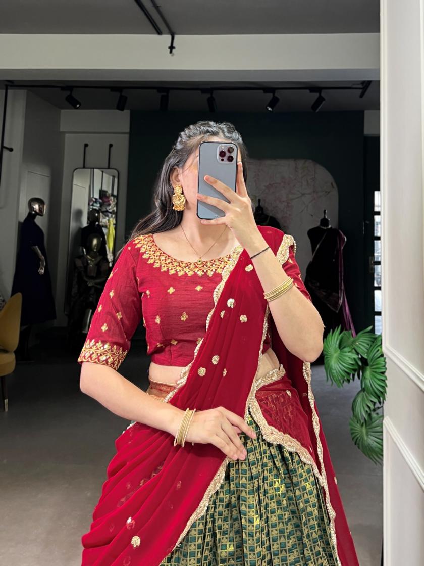 🌷Lehenga Collection 🌷 A lehenga that blends tradition with modern shine—Jacquard Silk at its finest. ☘️ Lehenga (Stitched) Blouse (Unstitched) Dupatta Package Contain : Lehenga, Blouse, Dupatta, Drawstring Weight : 1.500 kg Rate : 999/- +gst |