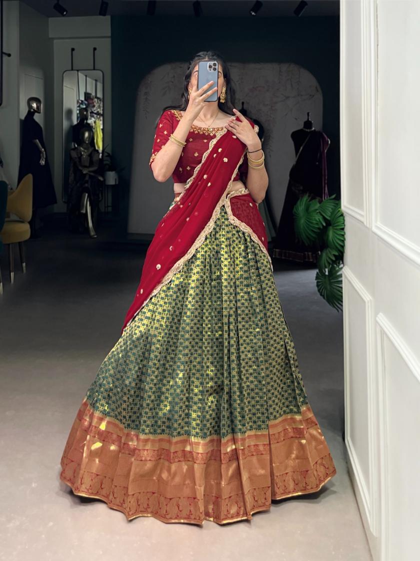lnb jacquard silk traditional zari weaving stitch lehenga unstitch blouse with dupatta