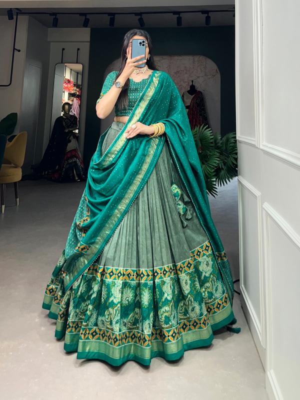 🌷 Lehenga Choli🌷 Unleash Your Inner Diva with This Tussar Silk Printed Lehenga Choli: Effortless Glamour and Sophistication 🪷 LNB1210SGN Lehenga (Stitched) Blouse (Unstitched) Dupatta Package Contain : Lehenga, Blouse, Dupatta, Drawstring with Zip, Tassels Weight : 1.250 KG Rate : 1500/- |
