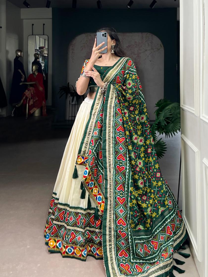 lnb1735 tasar silk patola print fully stitch navratri lehengas with dupatta