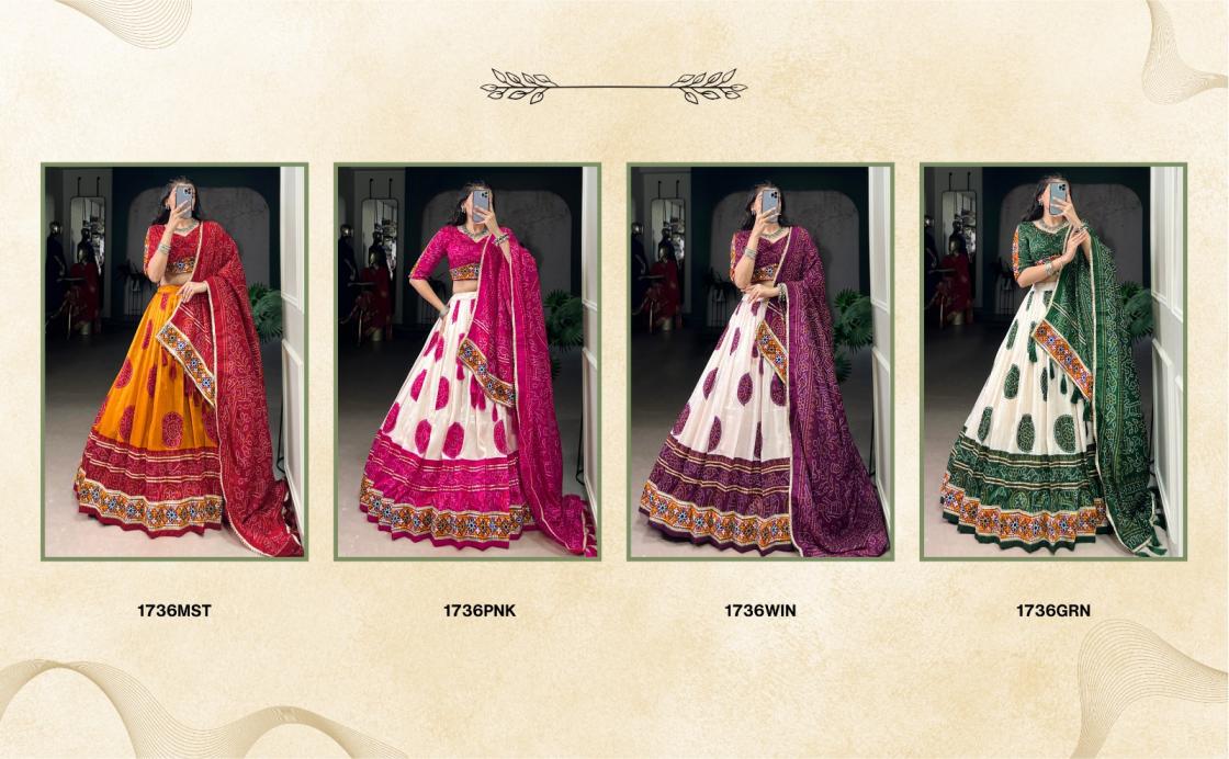 🌷Lehenga Choli🌷 A perfect blend of heritage and festive elegance – Tasar silk Bandhej chaniya choli with detailed Gamthi touch. 🦚 LNB1736WIN Lehenga (Stitched) Blouse (Stitched) Dupatta Package Contain : Lehenga, Blouse, Dupatta, Drawstring with Zip, Tassels Weight : 1.270 KG Rate : 1700/- |