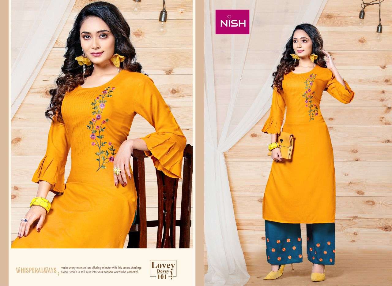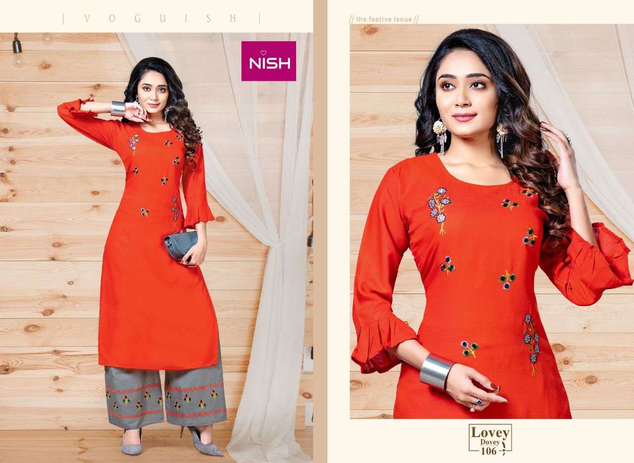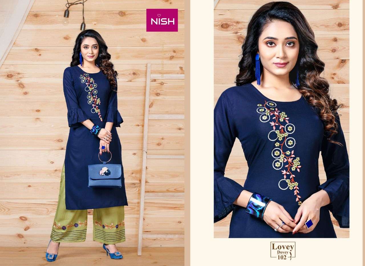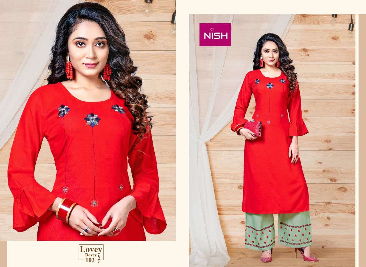 Lovey Dovey By Nish Heavy Rayon Slub Work With Plazo Catlog Collecton Whoelsaler Best Rate In Surat