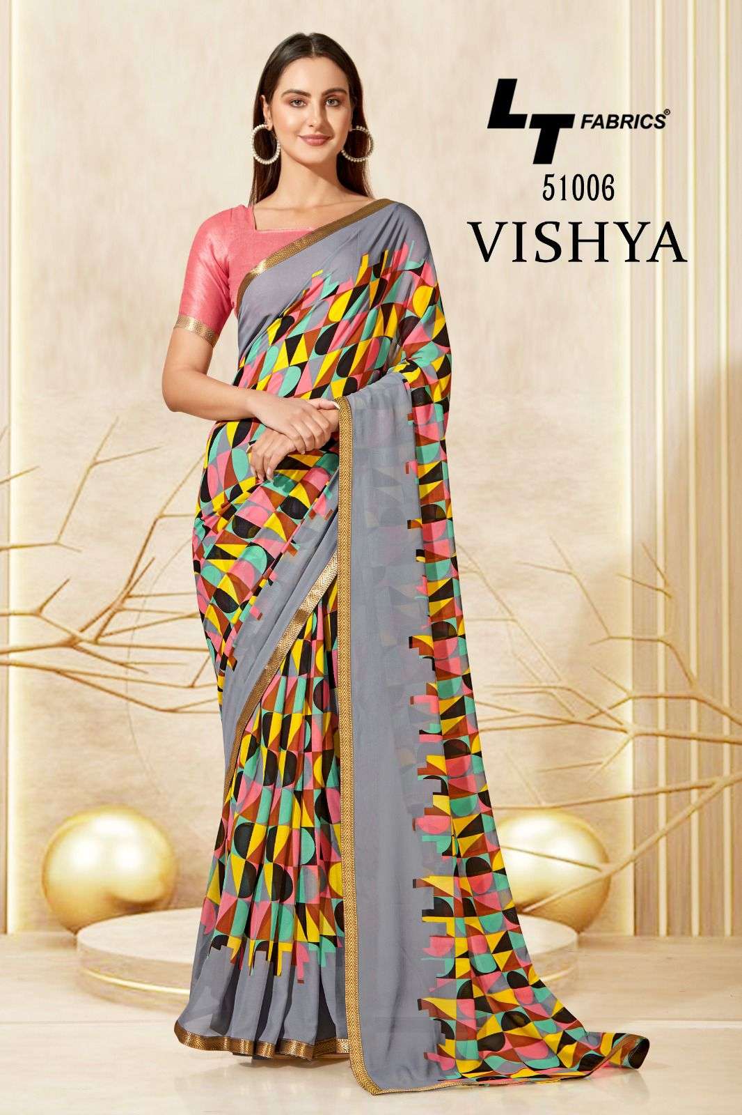 lt fabrics vishya casual wear printed saree wholesaler