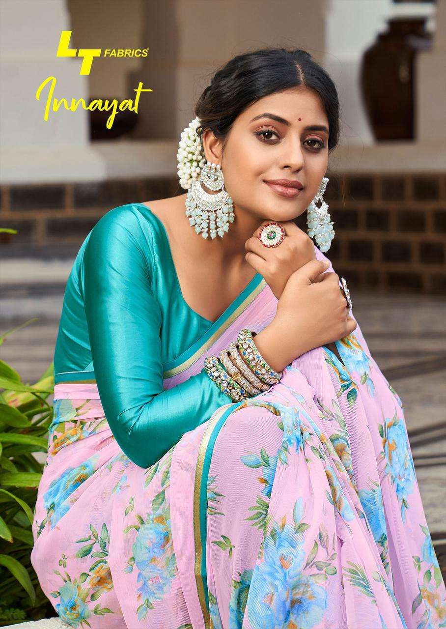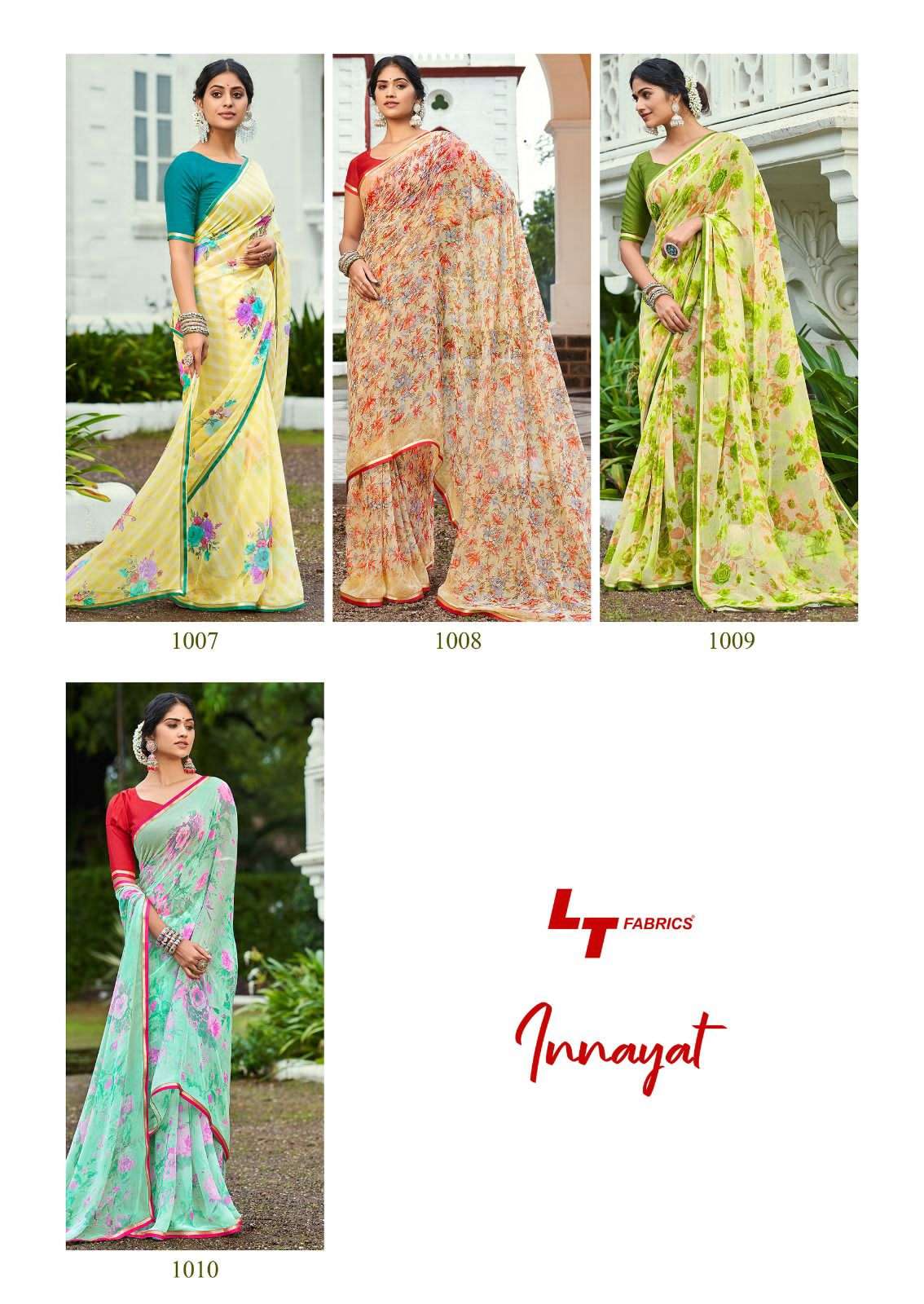 lt fashion innayat 1001-1010 fancy chiffon sarees with contrast satin blouse peice catalog