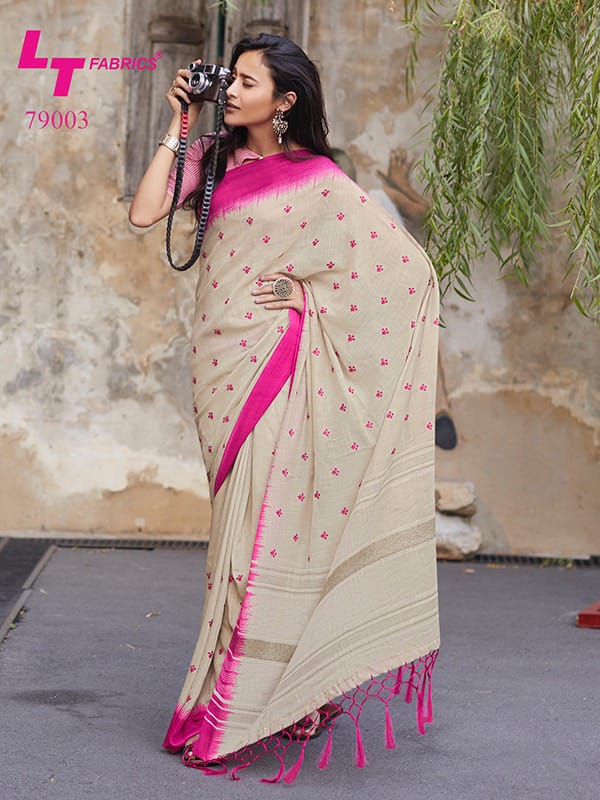 Lt Fashion Megha Linen Silk With Resham Work Summer Wear Saree