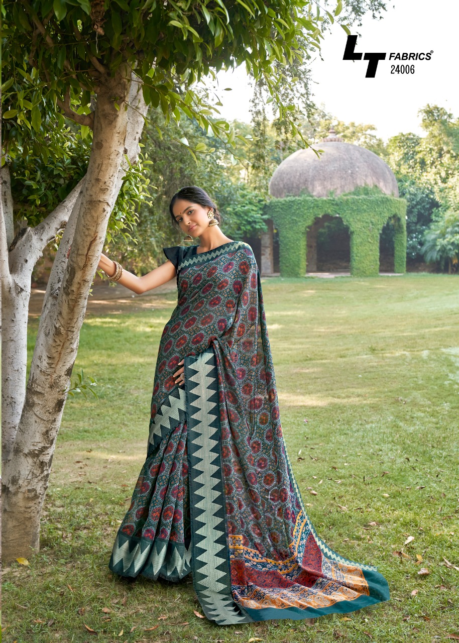 Lt Fashion Preksha Linen Silk With Satin Zari Patta Casual Wear Saree Wholesaler