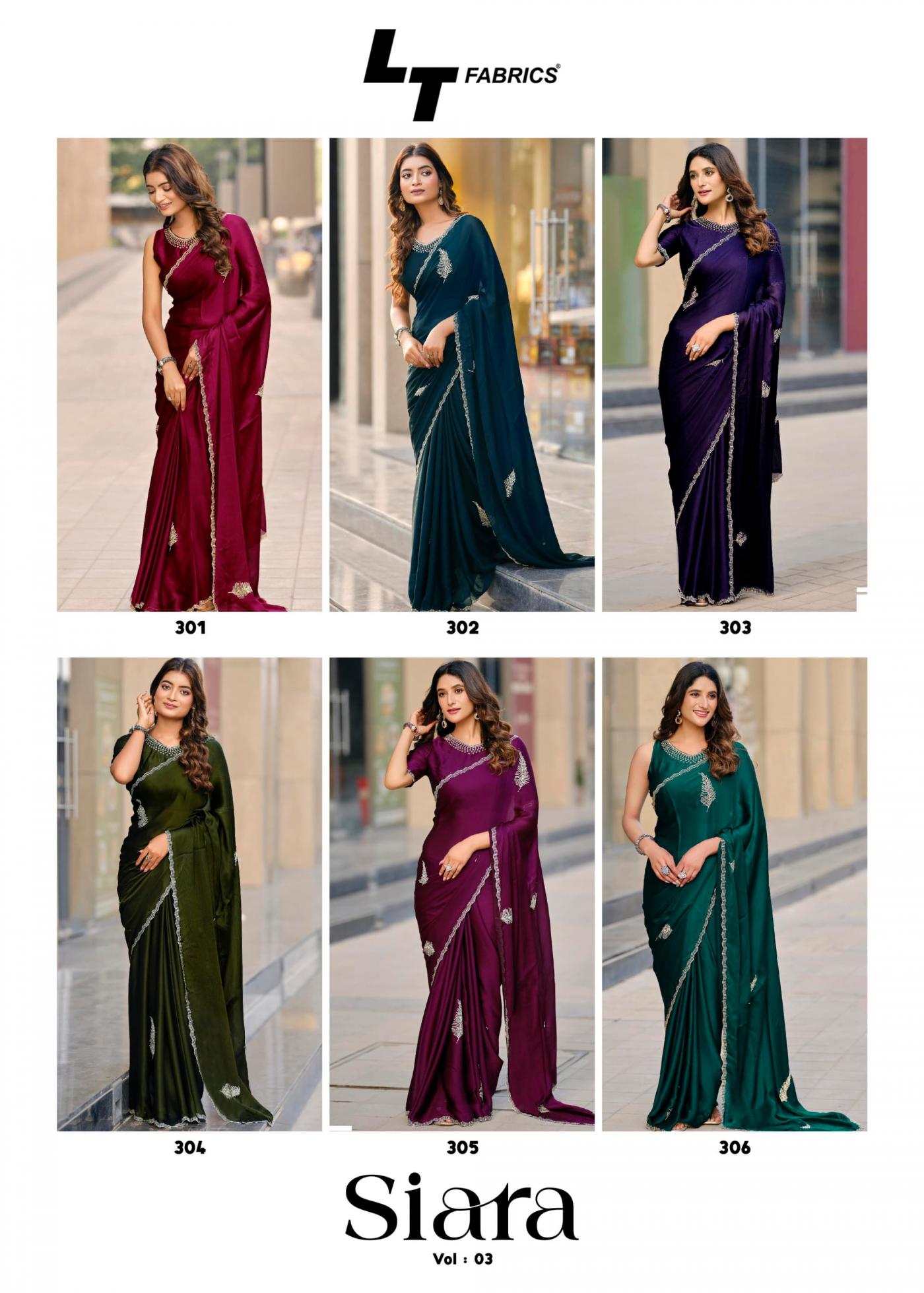 lt fashion siara vol 3 amazing satin chiffon saree wholesaler