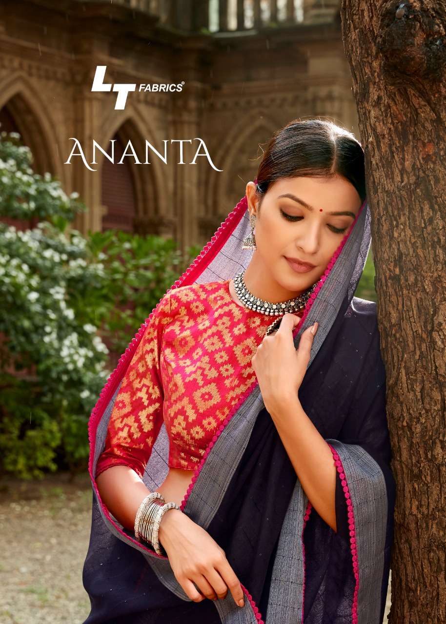 lt fashions ananta vol 2 linen silk designer saree with fancy mask