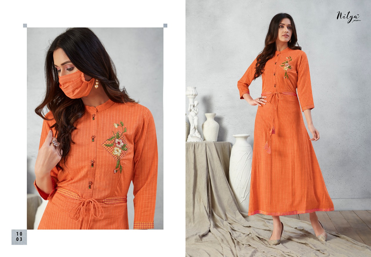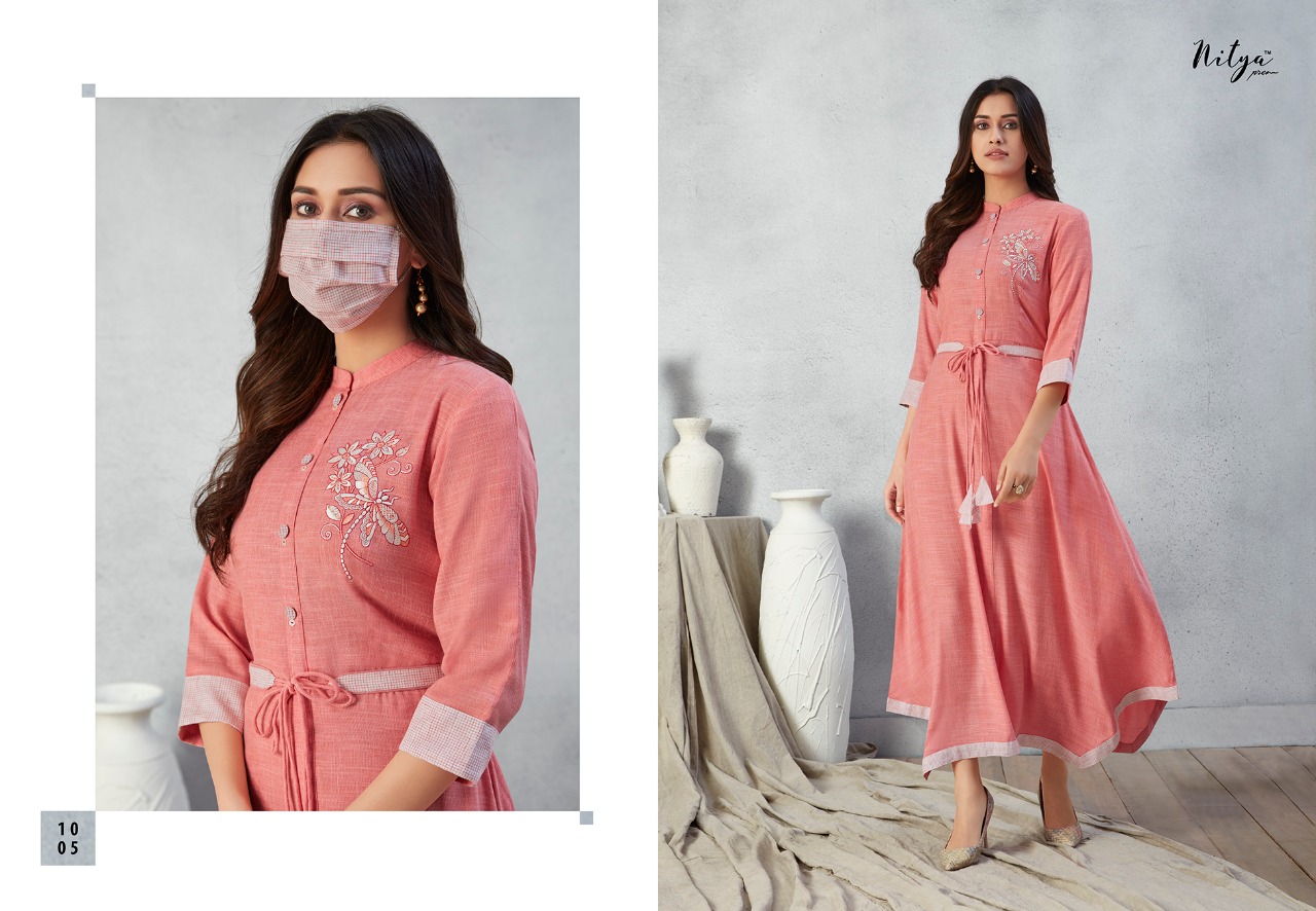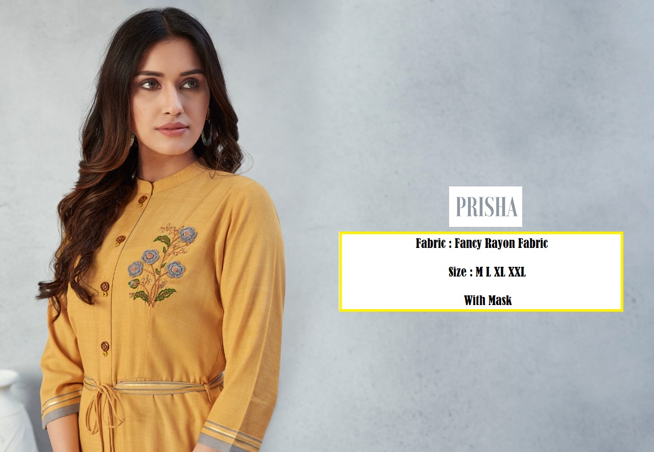 Lt Nitya Launch Prisha Fancy Rayon Long Stylish Kurti With Mask Wholesale In Surat