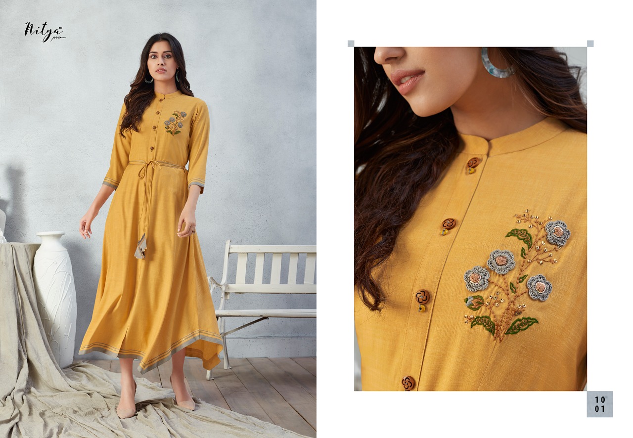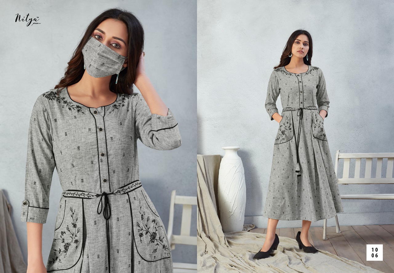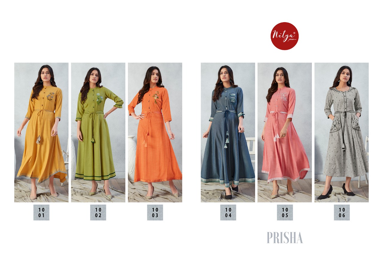 Lt Nitya Launch Prisha Fancy Rayon Long Stylish Kurti With Mask Wholesale In Surat