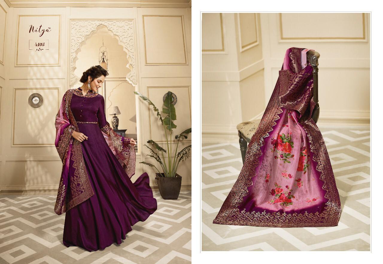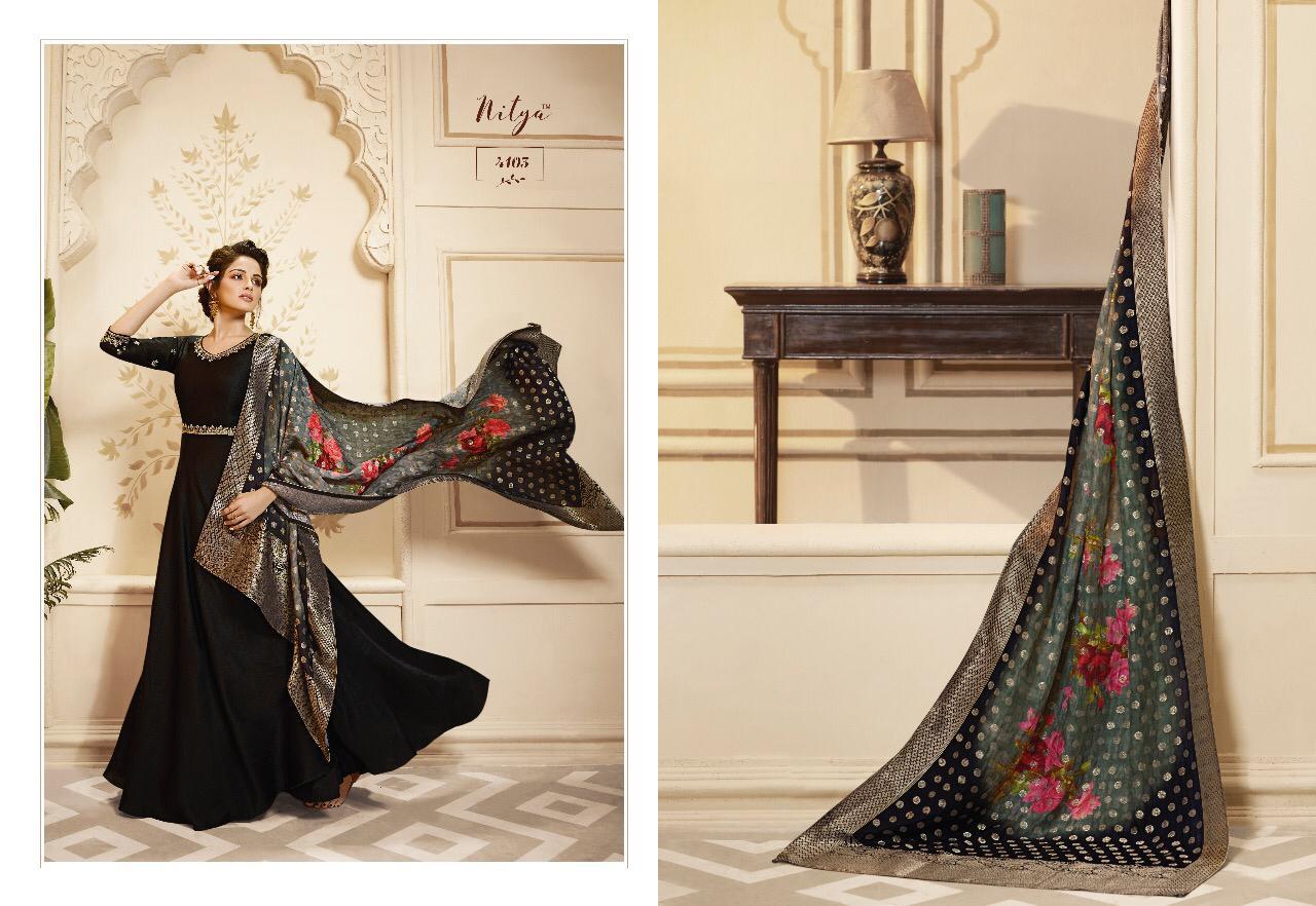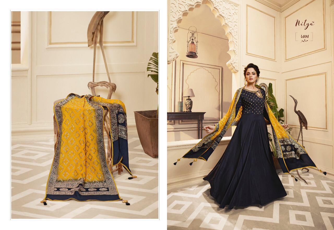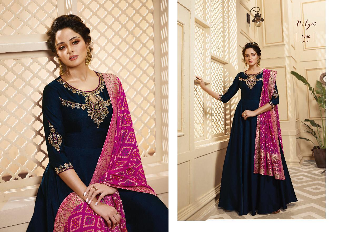 Lt Nitya Vol 41 Maslin Silk Gown Style Kurti With Dupatta Party Wear Festival Collection
