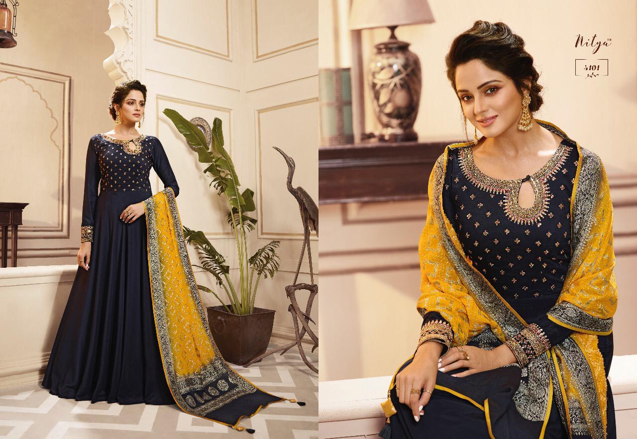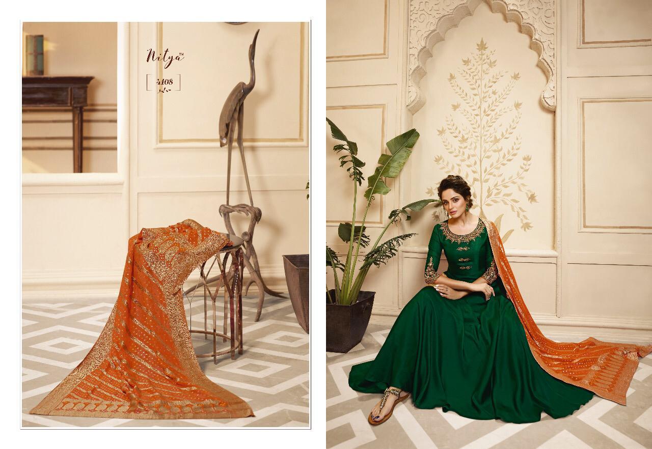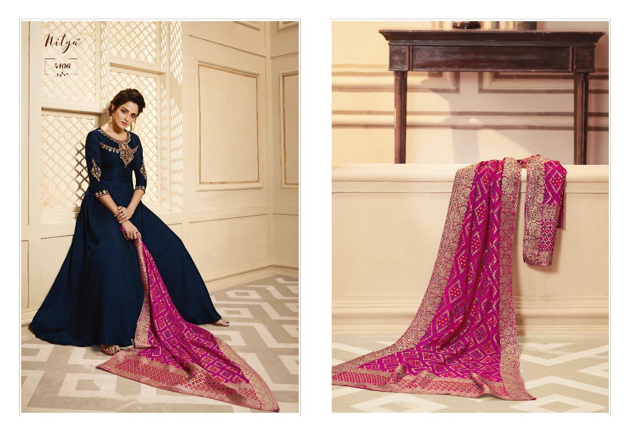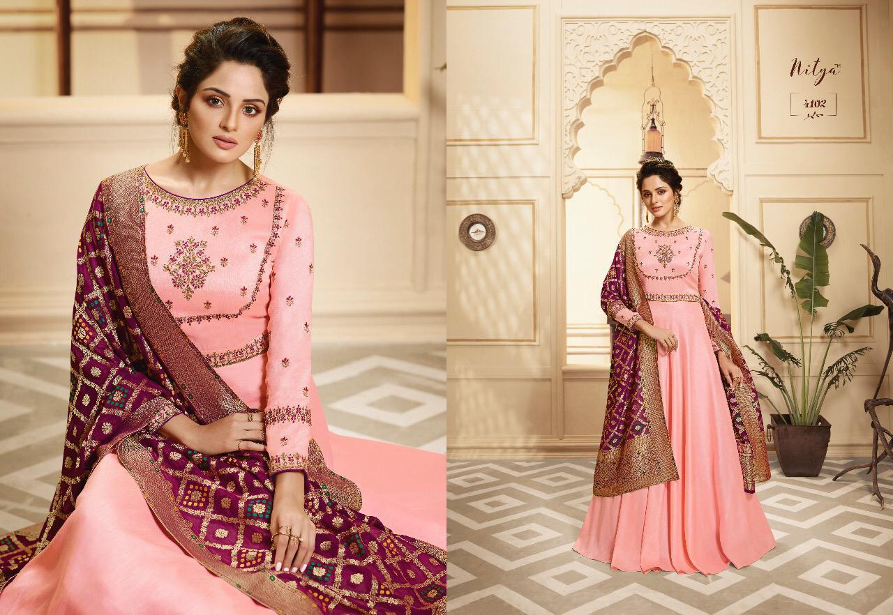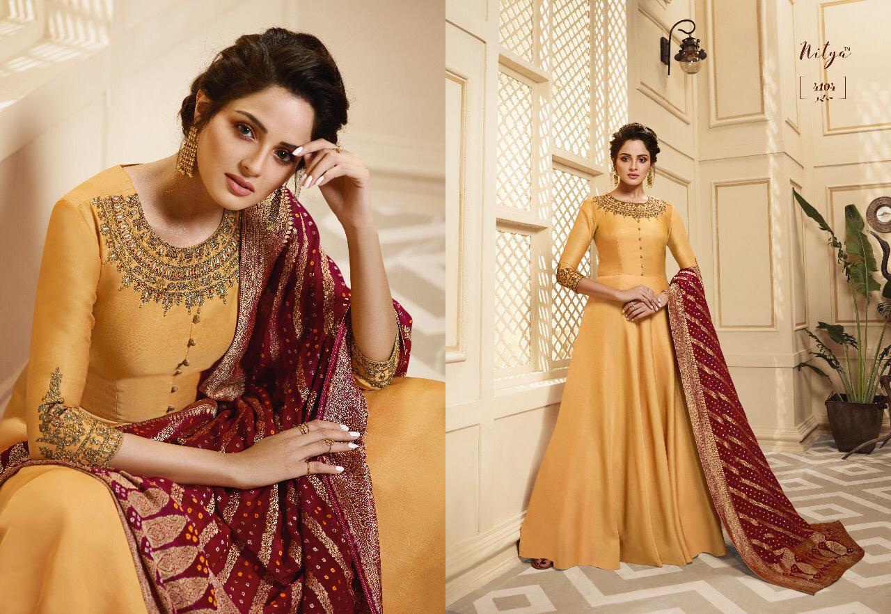 Lt Nitya Vol 41 Maslin Silk Gown Style Kurti With Dupatta Party Wear Festival Collection