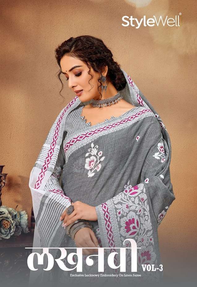 lucknowi vol 3 by stylewell linen embroidery fancy sarees