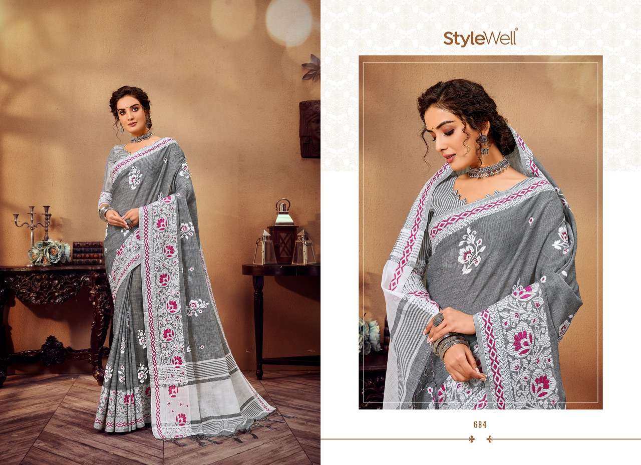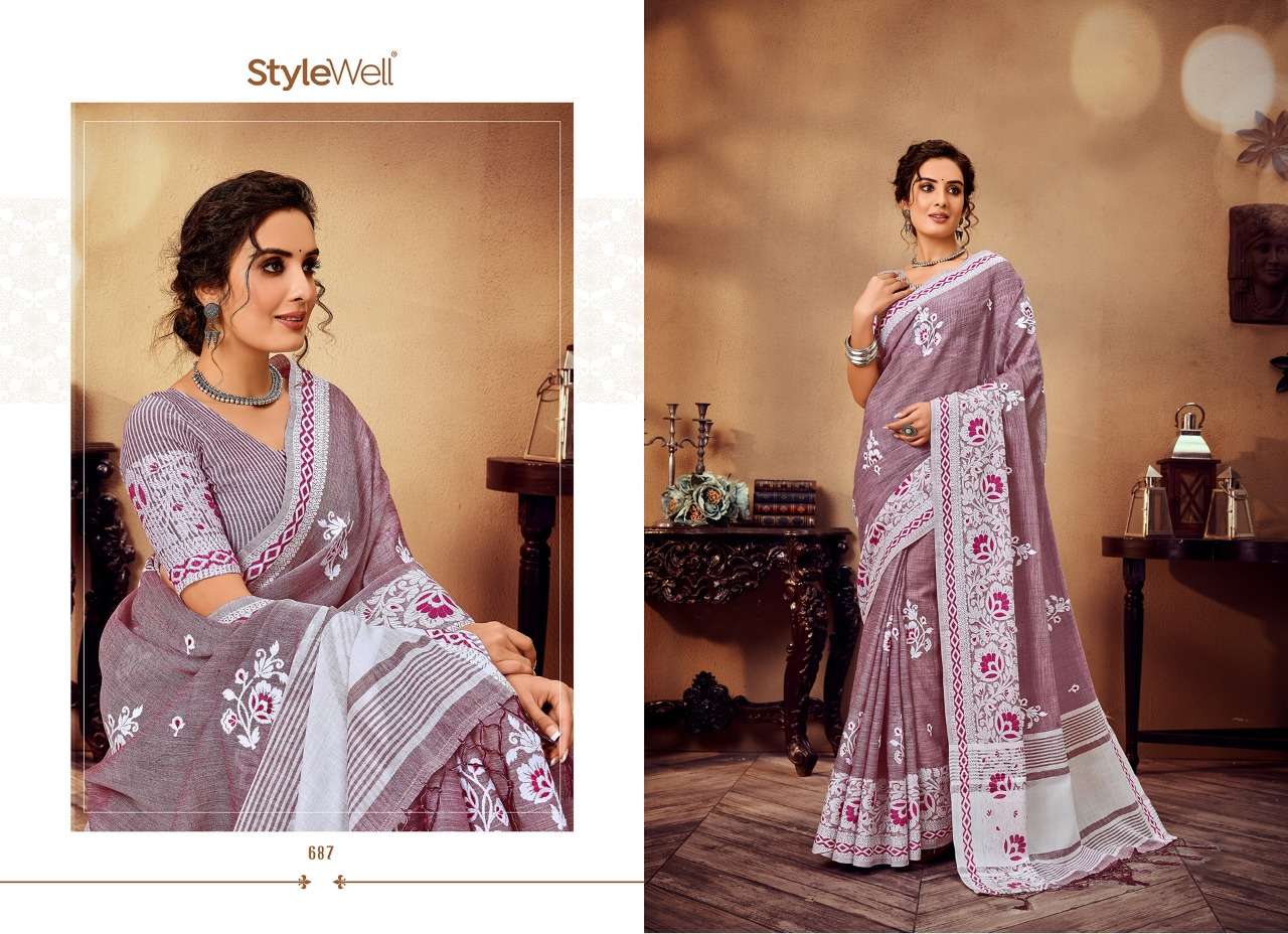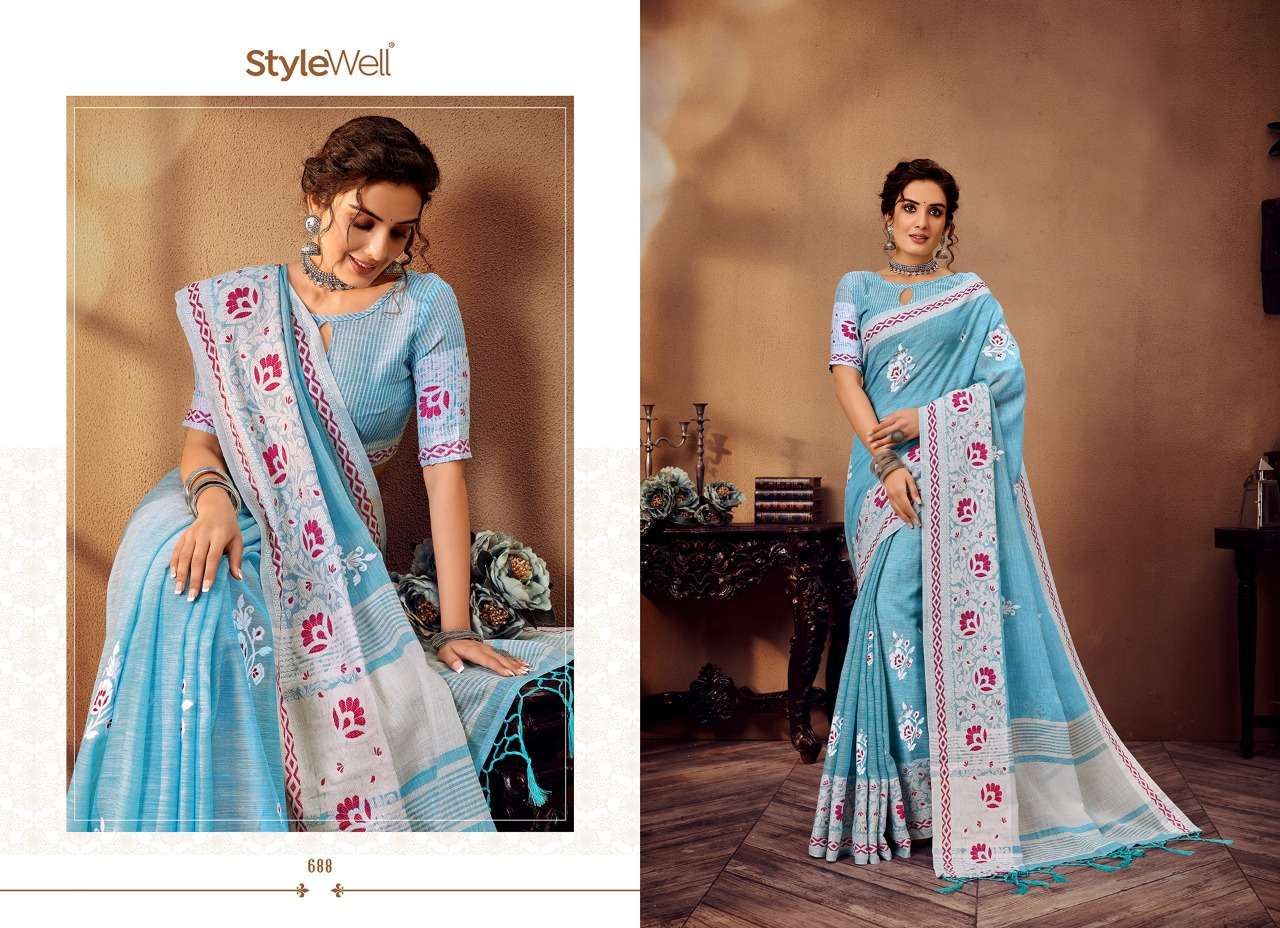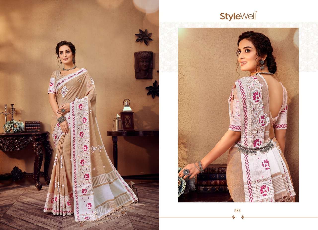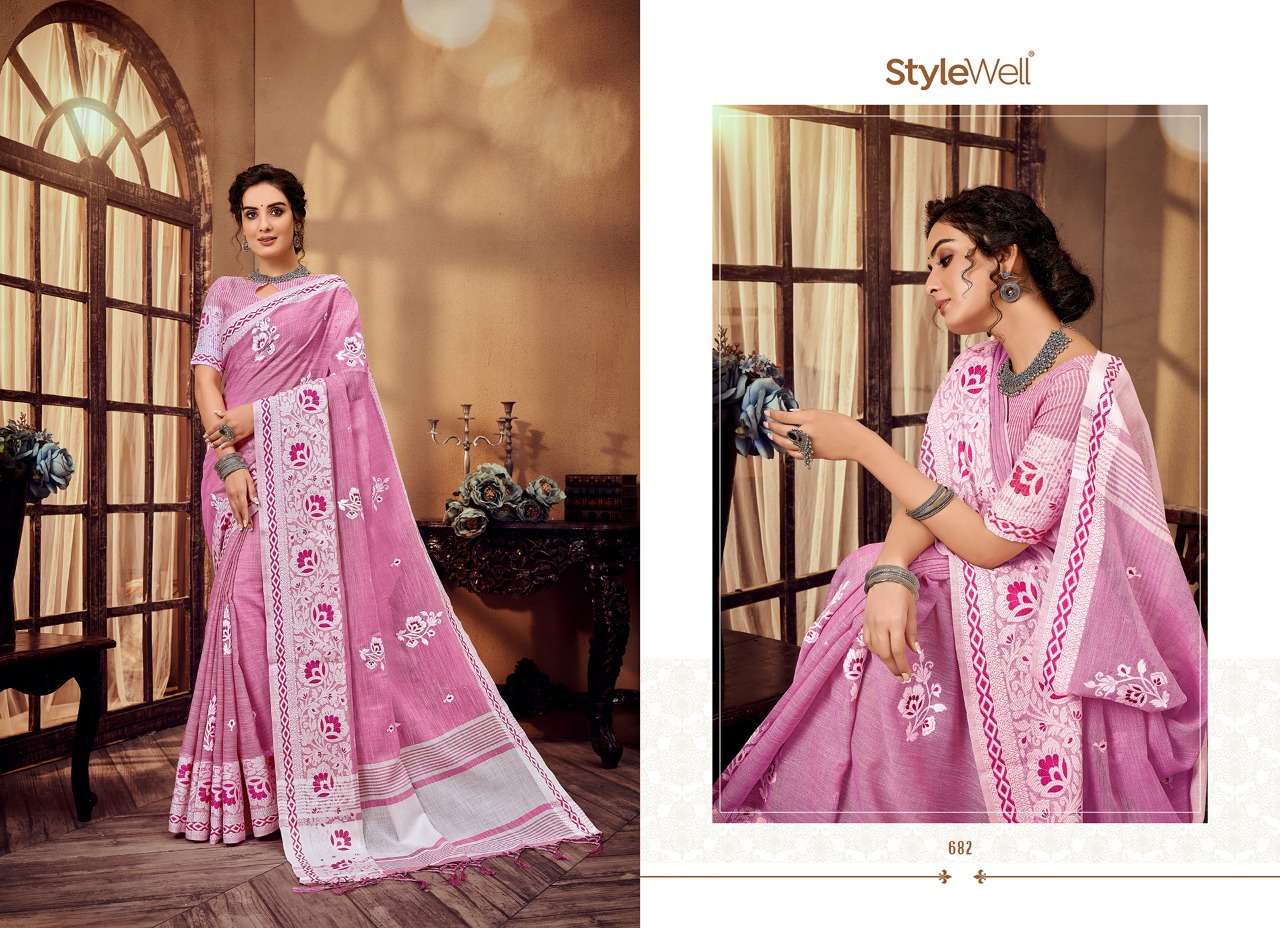Name: Stylewell Co.---Lucknowi Vol.3 Meena Linen Saree |