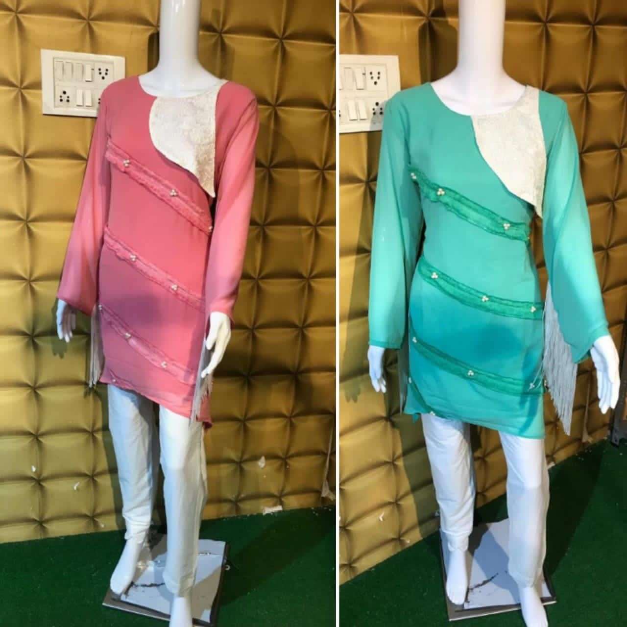 READYMADE COLLETION STOCK CLEARANCE SALE  Luxury pet Collection  Today we r launching our superb *collection In Cut Kurti      Laxuria Trendz        D.No. 1120 Description  Designer StYlish Cut Kurti * with *unique Lace With Pearls & beautiful Jumping Rope In Sleeve Both Side * ..  paired with Ultra Glamours *Bottom Fabric Details Top:- heavy fox georgget with inner...  Bottom :- Jam Satin Colours :- 2 size details Top xl size chest (42) Bottom xl size (36-42)           Rate : 599/- full set Available      Delivery Ready Colour may slightly vary due to light effect |