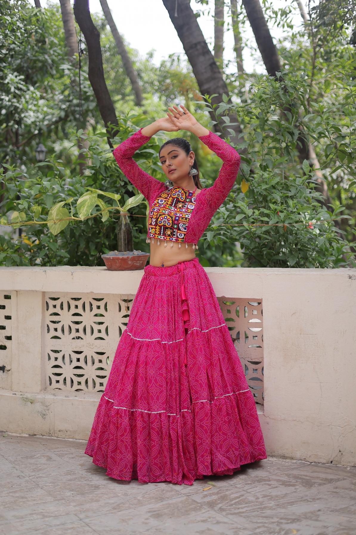 lw 7134 faux georgette readymade bandhej navratri lehenga with top for occasion