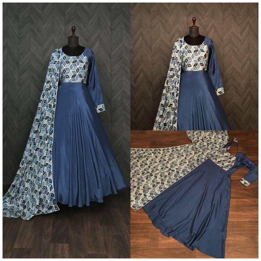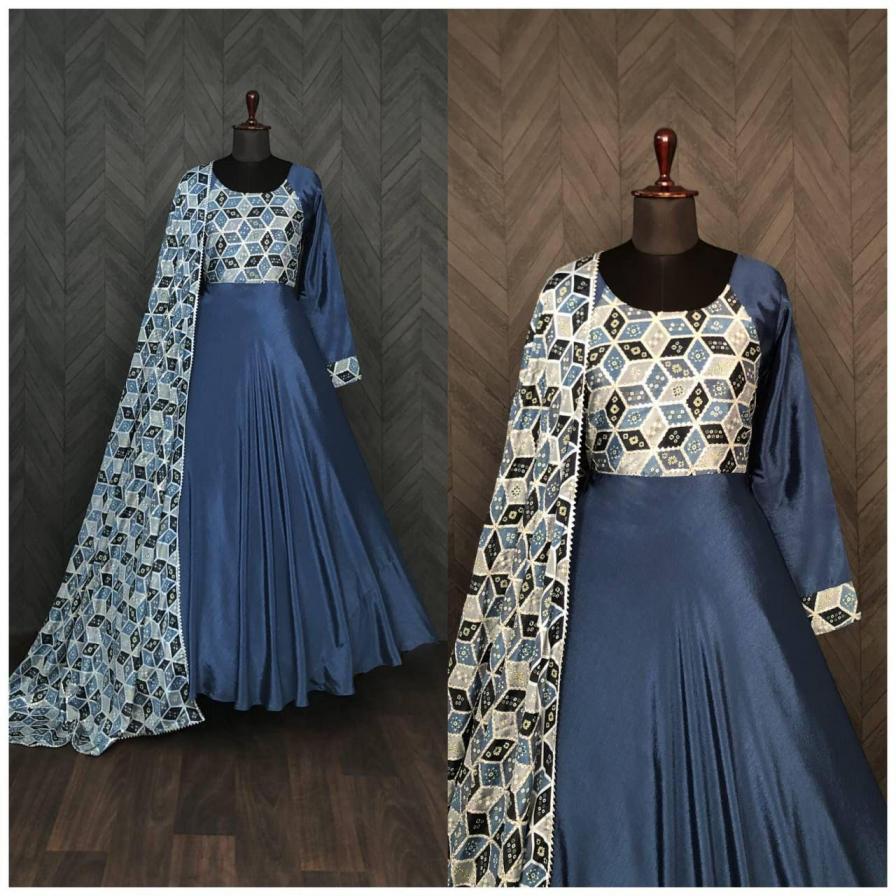 lw 9110 chinon fancy look stitched gown with dupatta