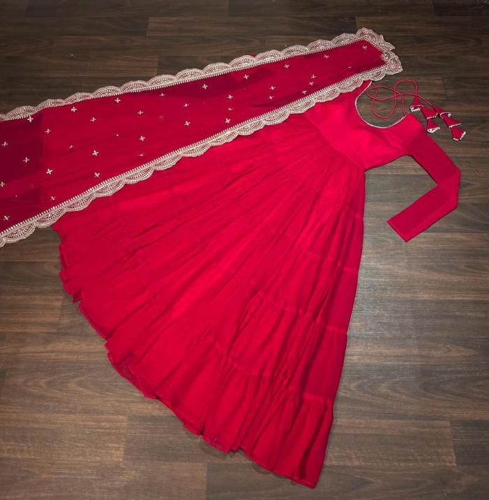 lw 9147 readymade faux georgette exclusive gown with dupatta