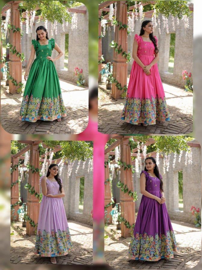 lw 9151 dola silk readymade attractive look flair gown supplier