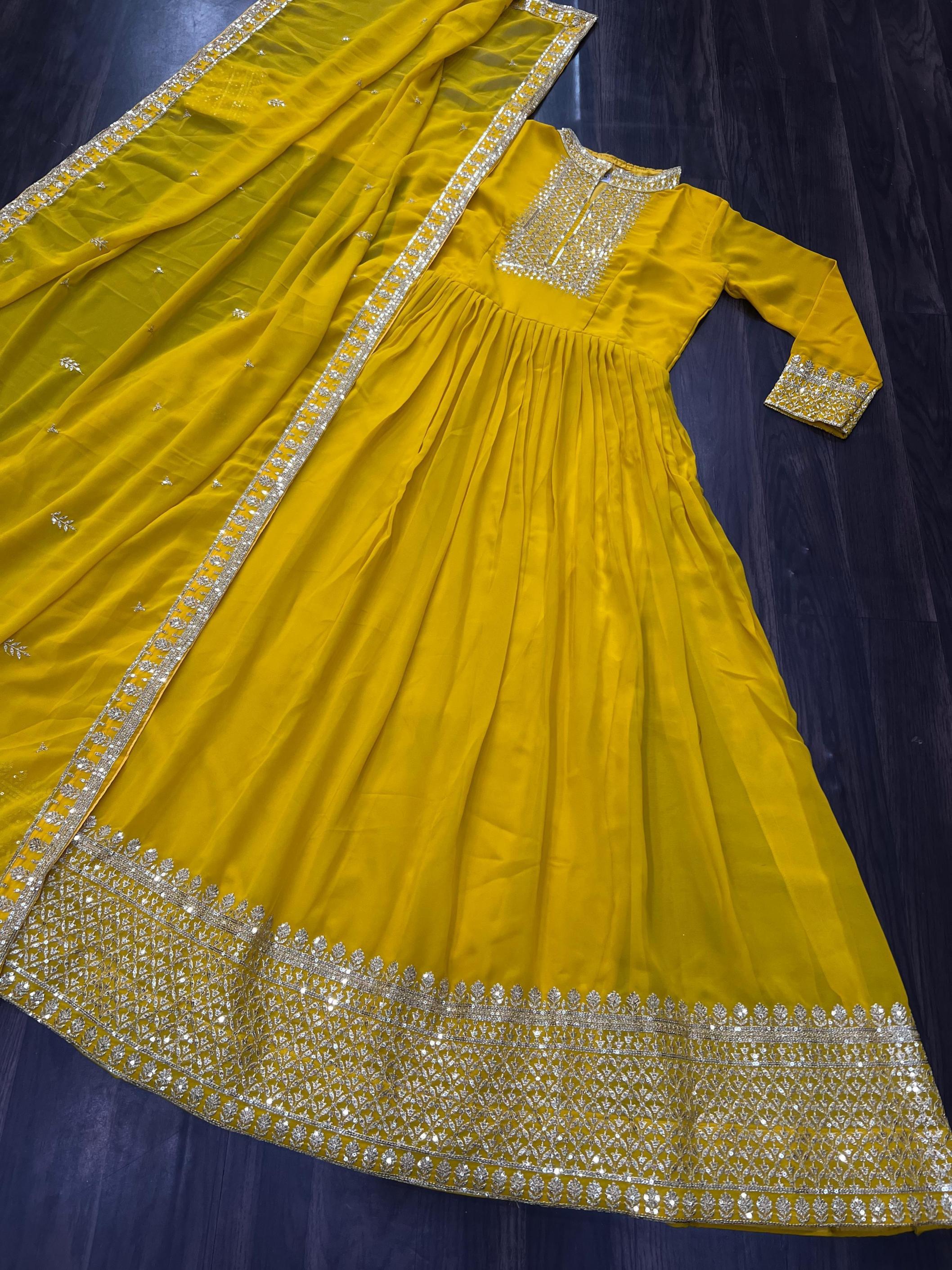💃🏼 GOWN-WITH-DUPATTA COLLECTIONS 2025💃🏼 Code:- LW-9210 Get ready to shine with these stunning outfit Made from Faux blooming And Sequins Embroidered Work. Discover the perfect ensemble to add a touch of glamour to your wardrobe and stand out from the crowd. GOWN :- 👇 DUPATTA :-👇 PACKAGE CONTAIN :- 1-Gown,1-Dupatta Colour:- 2 (Yellow,New wine) WEIGHT :- 1.1 KG RATE :- 1450/-INR |