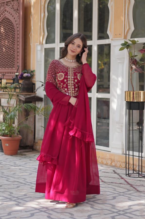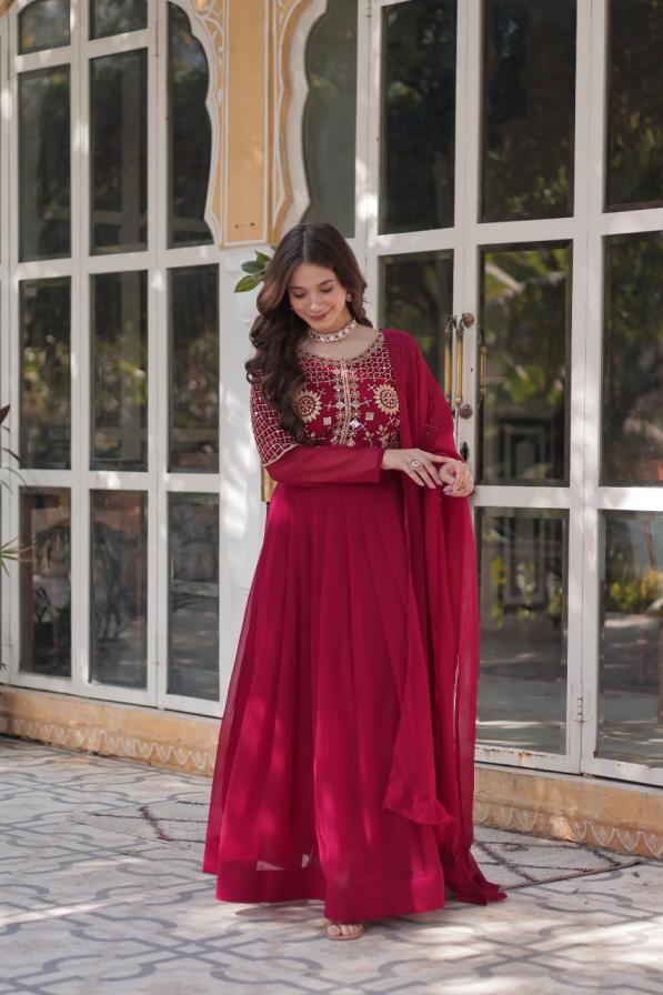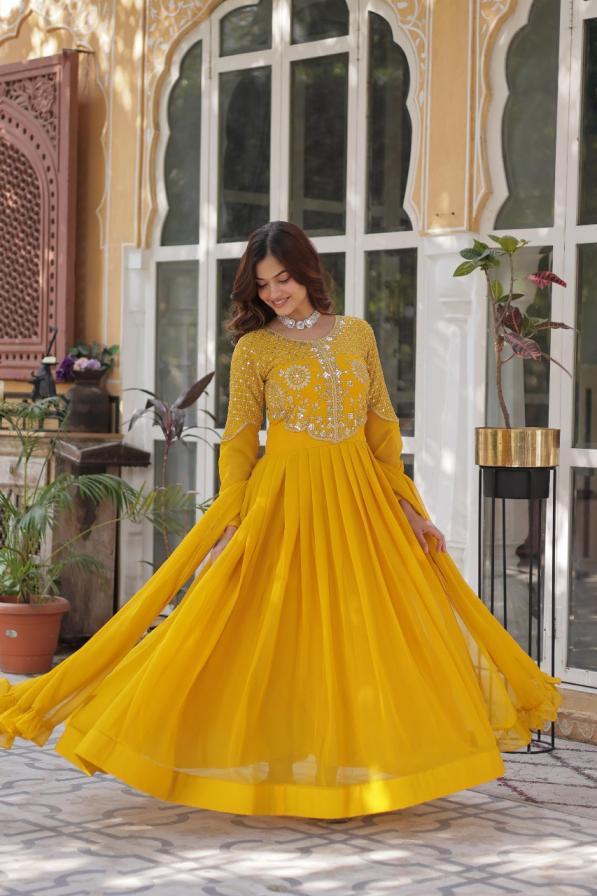 lw 9223 readymade faux blooming georgette stylish gown with dupatta supplier
